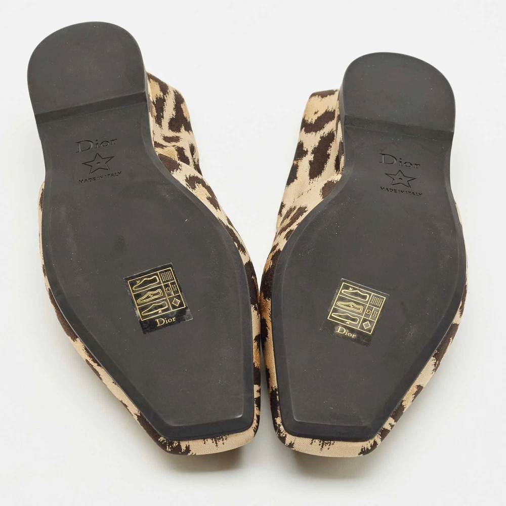 The Dior Mizza flats exude wild charm with their leopard print fabric in neutral tones. A pointed toe and sleek silhouette lend them a chic, feline edge that’s versatile and modern.Certified by The Luxury Closet - This item has gone through a detailed authentication process overseen by our experts. We offer a lifetime guarantee of authenticity on all our items. Import duties, taxes and charges are not included in the item price. These charges are the buyers responsibility. Please check with your country’s customs office to determine what these additional cost will be prior to buying. Our eBay Store About Us Contact Us Add to Favorite Sellers Dior Beige/Black Leopard Print Fabric Mizza Flats Size 34.5 $639.1 The Dior Mizza flats exude wild charm with their leopard print fabric in neutral tones. A pointed toe and sleek silhouette lend them a chic, feline edge that’s versatile and modern. Product Details Brand Color Beige Dimensions Material Fabric Size 34.5 Outsole Width Outsole Length Heel Height Includes Certified by The Luxury Closet This item has gone through a detailed authentication process overseen by our experts. We offer a lifetime guarantee of authenticity on all our items. How We Check The in-house team of experts at The Luxury Closet is highly trained to verify the authenticity and the condition of the luxury products. They ensure that only 100% authentic items are put on sale.The evaluation process is unique with its own mix of assessment criteria and differs according to the category. Each item is evaluated based on the following combination of hallmarks, hardware, stitching, symmetry, material, craftsmanship, stamping, codes, hologram stickers, and packaging. Our authenticators also check if the items have been modified or amended (e.g., aftermarket diamonds, replaced batteries, repaired bags, etc.) International Buyers Import duties, taxes and charges are not included in the item price. These charges are the buyers responsibility. Please check with your country’s customs office to determine what these additional cost will be prior to buying.