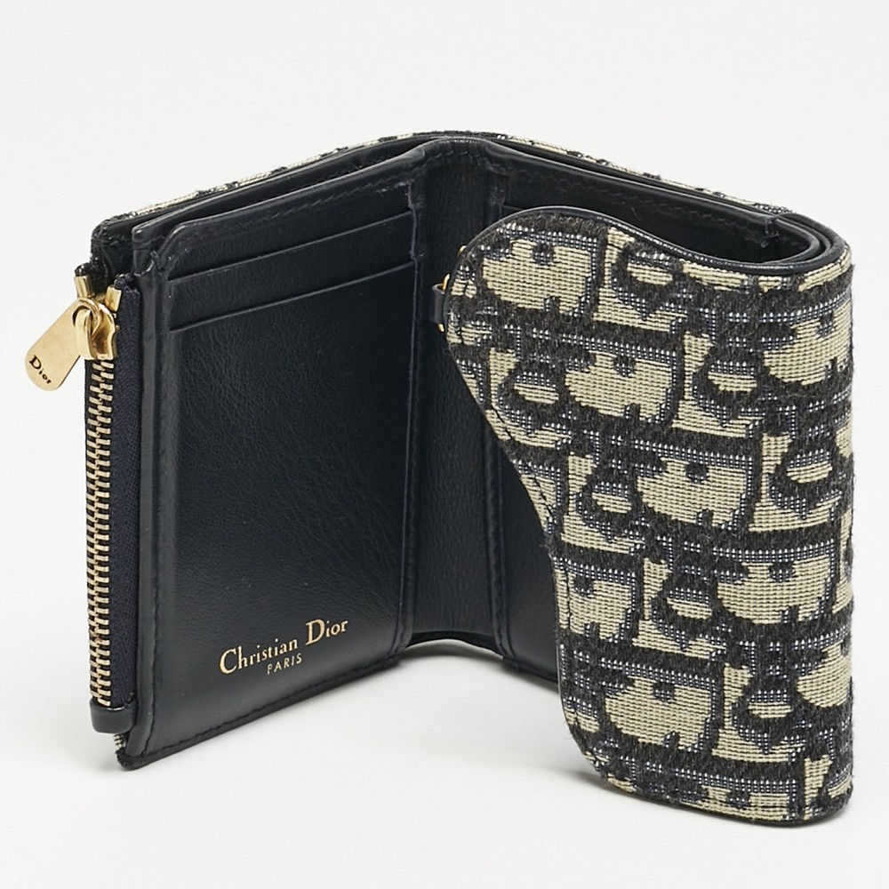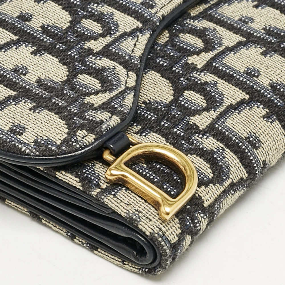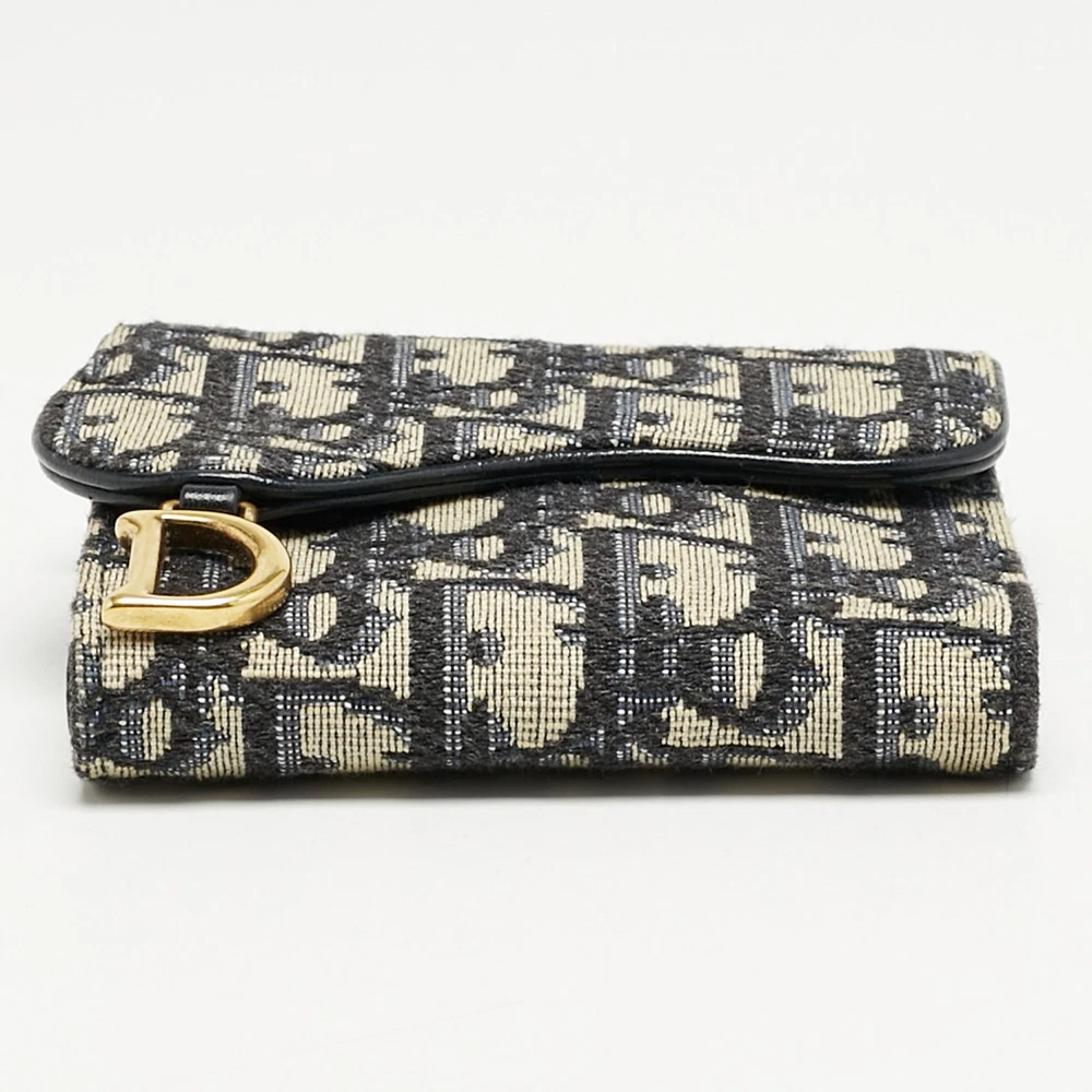 Merging iconic Dior heritage with a sculptural twist, the Saddle Lotus wallet in navy blue Oblique canvas is instantly recognizable. Compact yet capacious, it channels equestrian elegance with the signature saddle flap and antique gold tone ‘D’ charmCertified by The Luxury Closet - This item has gone through a detailed authentication process overseen by our experts. We offer a lifetime guarantee of authenticity on all our items. Import duties, taxes and charges are not included in the item price. These charges are the buyers responsibility. Please check with your country’s customs office to determine what these additional cost will be prior to buying. Our eBay Store About Us Contact Us Add to Favorite Sellers Dior Navy Blue Oblique Canvas Saddle Lotus Wallet $489.5 Merging iconic Dior heritage with a sculptural twist, the Saddle Lotus wallet in navy blue Oblique canvas is instantly recognizable. Compact yet capacious, it channels equestrian elegance with the signature saddle flap and antique gold tone ‘D’ charm Product Details Brand Color Navy Blue Dimensions Material Canvas Size Outsole Width Outsole Length Heel Height Includes Certified by The Luxury Closet This item has gone through a detailed authentication process overseen by our experts. We offer a lifetime guarantee of authenticity on all our items. How We Check The in-house team of experts at The Luxury Closet is highly trained to verify the authenticity and the condition of the luxury products. They ensure that only 100% authentic items are put on sale.The evaluation process is unique with its own mix of assessment criteria and differs according to the category. Each item is evaluated based on the following combination of hallmarks, hardware, stitching, symmetry, material, craftsmanship, stamping, codes, hologram stickers, and packaging. Our authenticators also check if the items have been modified or amended (e.g., aftermarket diamonds, replaced batteries, repaired bags, etc.) International Buyers Import duties, taxes and charges are not included in the item price. These charges are the buyers responsibility. Please check with your country’s customs office to determine what these additional cost will be prior to buying.