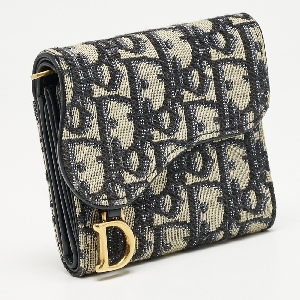 Merging iconic Dior heritage with a sculptural twist, the Saddle Lotus wallet in navy blue Oblique canvas is instantly recognizable. Compact yet capacious, it channels equestrian elegance with the signature saddle flap and antique gold tone ‘D’ charmCertified by The Luxury Closet - This item has gone through a detailed authentication process overseen by our experts. We offer a lifetime guarantee of authenticity on all our items. Import duties, taxes and charges are not included in the item price. These charges are the buyers responsibility. Please check with your country’s customs office to determine what these additional cost will be prior to buying. Our eBay Store About Us Contact Us Add to Favorite Sellers Dior Navy Blue Oblique Canvas Saddle Lotus Wallet $434.5 Merging iconic Dior heritage with a sculptural twist, the Saddle Lotus wallet in navy blue Oblique canvas is instantly recognizable. Compact yet capacious, it channels equestrian elegance with the signature saddle flap and antique gold tone ‘D’ charm Product Details Brand Color Navy Blue Dimensions Material Canvas Size Outsole Width Outsole Length Heel Height Includes Certified by The Luxury Closet This item has gone through a detailed authentication process overseen by our experts. We offer a lifetime guarantee of authenticity on all our items. How We Check The in-house team of experts at The Luxury Closet is highly trained to verify the authenticity and the condition of the luxury products. They ensure that only 100% authentic items are put on sale.The evaluation process is unique with its own mix of assessment criteria and differs according to the category. Each item is evaluated based on the following combination of hallmarks, hardware, stitching, symmetry, material, craftsmanship, stamping, codes, hologram stickers, and packaging. Our authenticators also check if the items have been modified or amended (e.g., aftermarket diamonds, replaced batteries, repaired bags, etc.) International Buyers Import duties, taxes and charges are not included in the item price. These charges are the buyers responsibility. Please check with your country’s customs office to determine what these additional cost will be prior to buying.