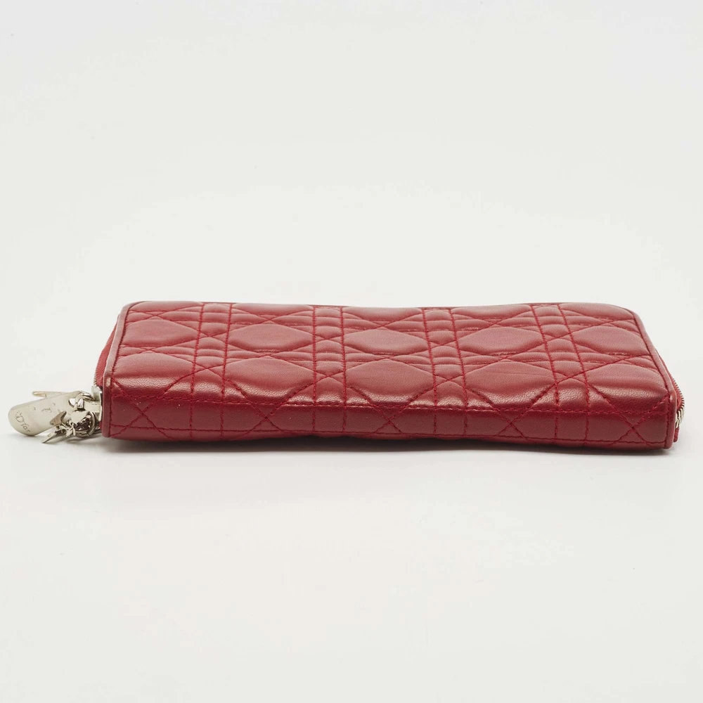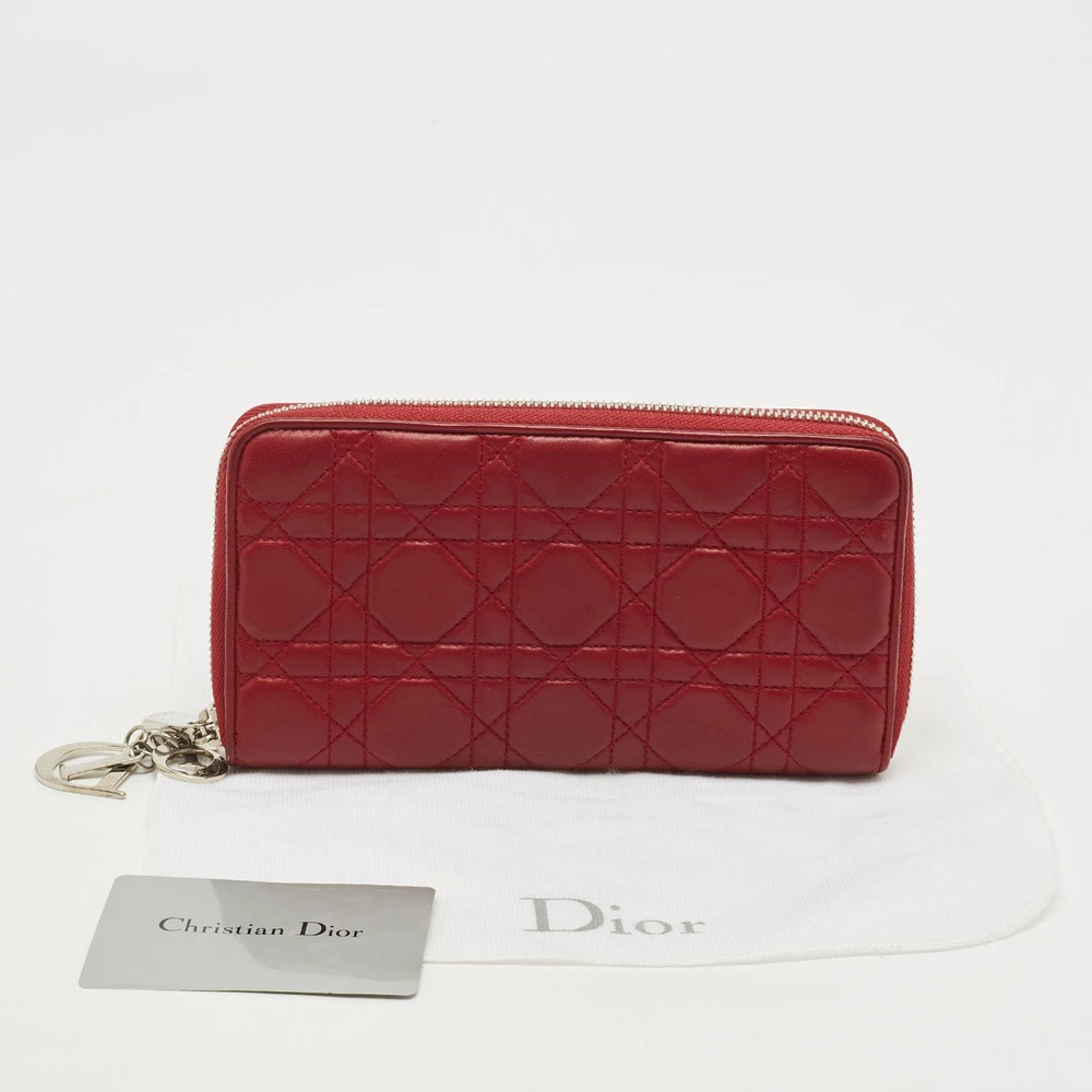 This authentic pre loved Dior Lady Dior wallet in striking red Cannage leather offers both beauty and organization, complete with a zip around design and signature Dior charms.Certified by The Luxury Closet - This item has gone through a detailed authentication process overseen by our experts. We offer a lifetime guarantee of authenticity on all our items. Import duties, taxes and charges are not included in the item price. These charges are the buyers responsibility. Please check with your country’s customs office to determine what these additional cost will be prior to buying. Our eBay Store About Us Contact Us Add to Favorite Sellers Dior Red Cannage Leather Lady Dior Zip Continental Wallet $559.9 This authentic pre loved Dior Lady Dior wallet in striking red Cannage leather offers both beauty and organization, complete with a zip around design and signature Dior charms. Product Details Brand Color Red Dimensions Material Leather Size Outsole Width Outsole Length Heel Height Includes Certified by The Luxury Closet This item has gone through a detailed authentication process overseen by our experts. We offer a lifetime guarantee of authenticity on all our items. How We Check The in-house team of experts at The Luxury Closet is highly trained to verify the authenticity and the condition of the luxury products. They ensure that only 100% authentic items are put on sale.The evaluation process is unique with its own mix of assessment criteria and differs according to the category. Each item is evaluated based on the following combination of hallmarks, hardware, stitching, symmetry, material, craftsmanship, stamping, codes, hologram stickers, and packaging. Our authenticators also check if the items have been modified or amended (e.g., aftermarket diamonds, replaced batteries, repaired bags, etc.) International Buyers Import duties, taxes and charges are not included in the item price. These charges are the buyers responsibility. Please check with your country’s customs office to determine what these additional cost will be prior to buying.
