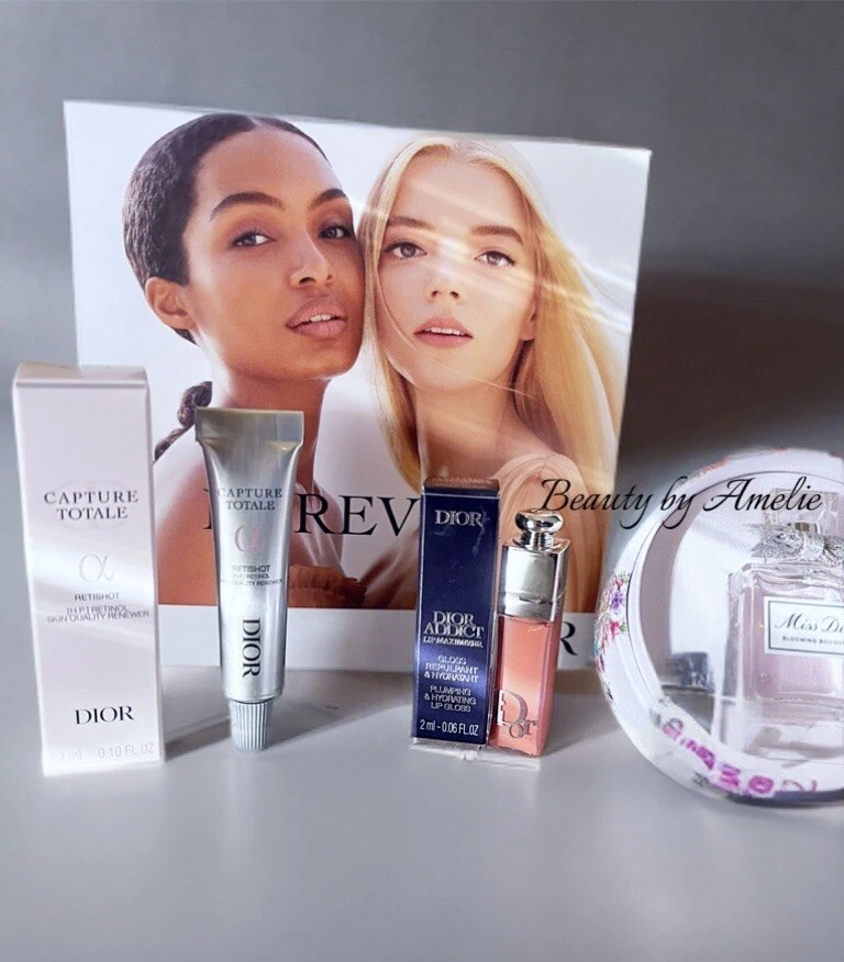 This Dior gift set is a dream for beauty lovers! The travel-sized lip gloss in rose nude gives the perfect subtle shine, and the mascara adds amazing volume. The Blooming Bouquet sample smells divine, and the mini foundation is great for touch-ups. Everything comes in a chic case—ideal for trips or keeping in your bag. Such a luxurious treat with high-quality products that feel indulgent yet practical. Totally worth it!