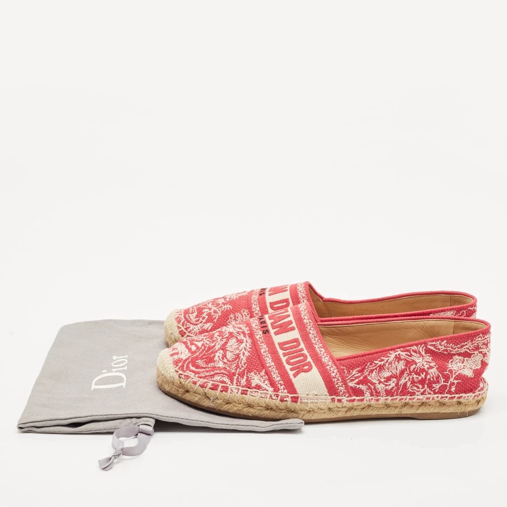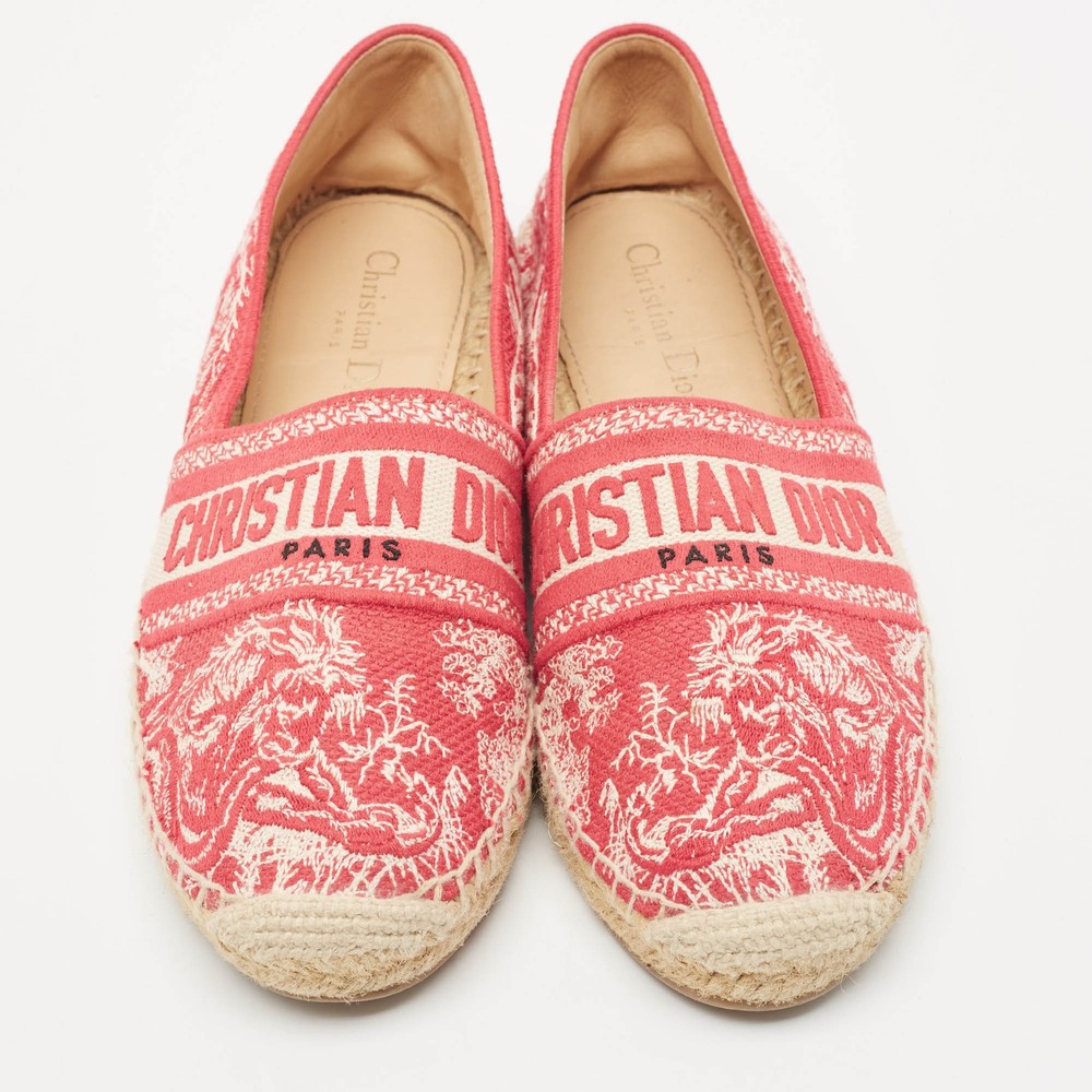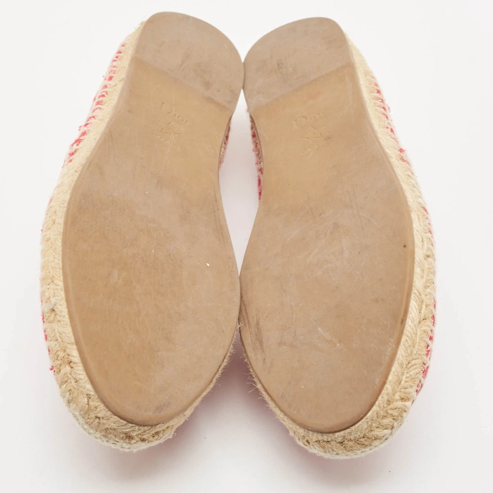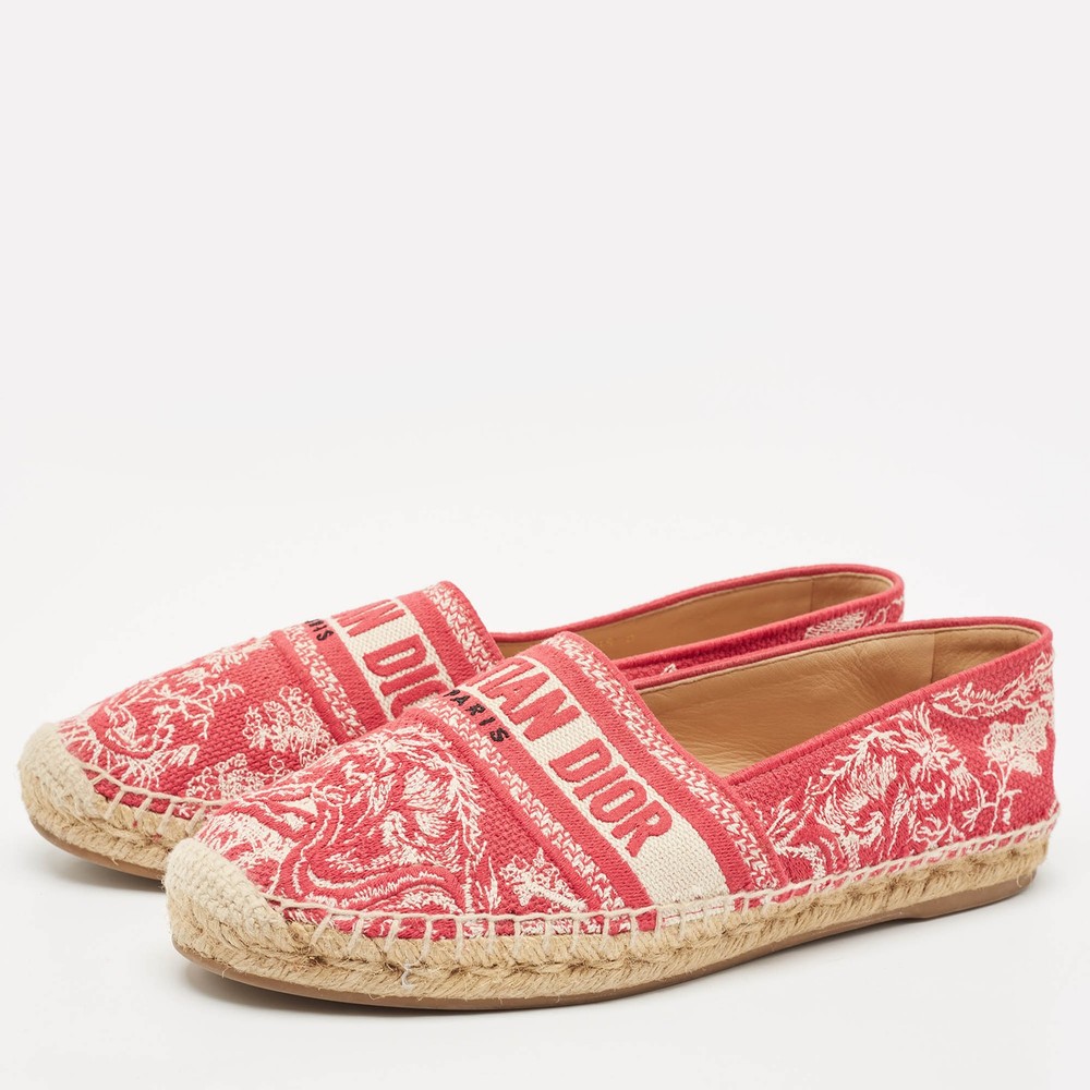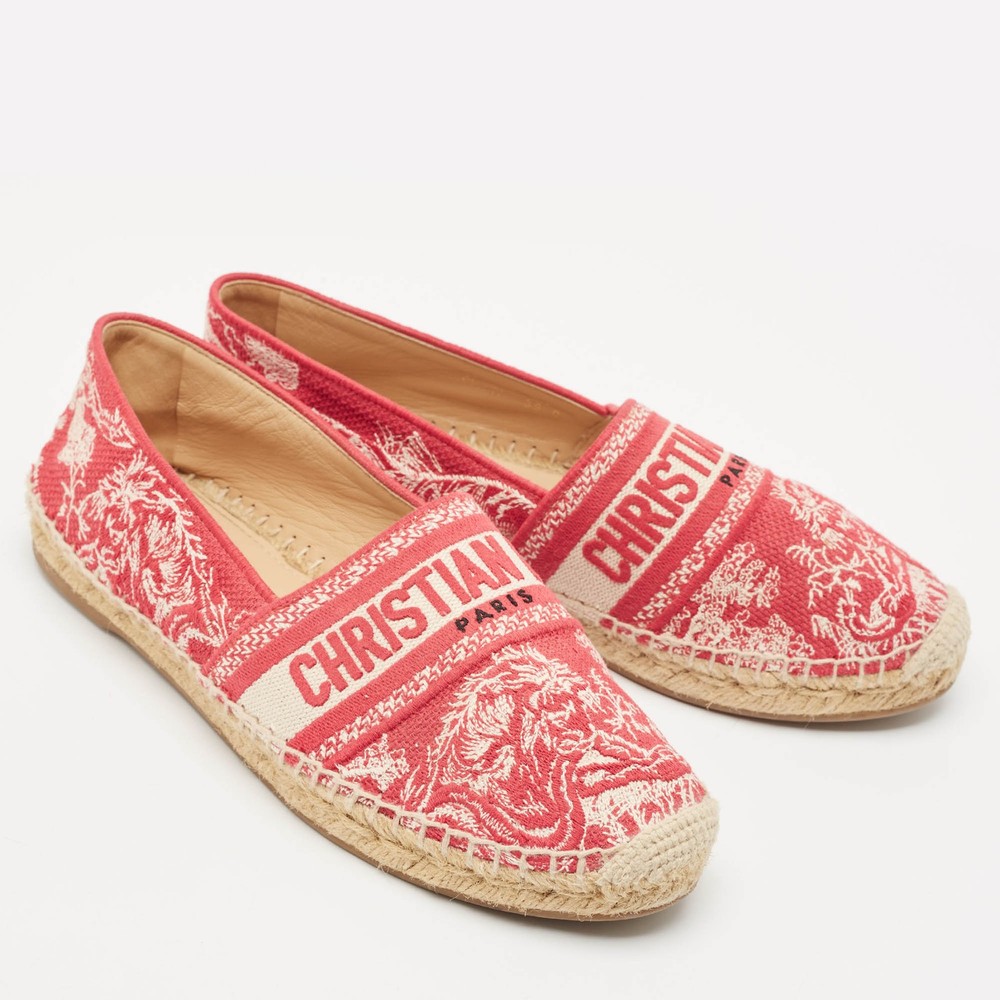 Espadrille flats never looked so stylish, thanks to these ones from Dior The white and red flats are crafted from canvas and feature an embroidered logo exterior with the Christian Dior brand labeling on the vamps. They are styled with round toes and equipped with comfortable leather lined insoles, braided midsoles, and durable rubber soles. Perfect conversation starters, we sayCertified by The Luxury Closet - This item has gone through a detailed authentication process overseen by our experts. We offer a lifetime guarantee of authenticity on all our items. Import duties, taxes and charges are not included in the item price. These charges are the buyers responsibility. Please check with your country’s customs office to determine what these additional cost will be prior to buying. Our eBay Store About Us Contact Us Add to Favorite Sellers Dior White/Red Embroidered Canvas Granville Espadrille Flats Size 39 $455.4 Espadrille flats never looked so stylish, thanks to these ones from Dior The white and red flats are crafted from canvas and feature an embroidered logo exterior with the Christian Dior brand labeling on the vamps. They are styled with round toes and equipped with comfortable leather lined insoles, braided midsoles, and durable rubber soles. Perfect conversation starters, we say Product Details Brand Color Red Dimensions Material Canvas Size 39 Outsole Width Outsole Length Heel Height Includes Certified by The Luxury Closet This item has gone through a detailed authentication process overseen by our experts. We offer a lifetime guarantee of authenticity on all our items. How We Check The in-house team of experts at The Luxury Closet is highly trained to verify the authenticity and the condition of the luxury products. They ensure that only 100% authentic items are put on sale.The evaluation process is unique with its own mix of assessment criteria and differs according to the category. Each item is evaluated based on the following combination of hallmarks, hardware, stitching, symmetry, material, craftsmanship, stamping, codes, hologram stickers, and packaging. Our authenticators also check if the items have been modified or amended (e.g., aftermarket diamonds, replaced batteries, repaired bags, etc.) International Buyers Import duties, taxes and charges are not included in the item price. These charges are the buyers responsibility. Please check with your country’s customs office to determine what these additional cost will be prior to buying.
