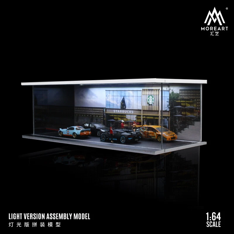 Diorama 1/64 Car Garage Model LED Lights City Store Backdrop Scene Display Model