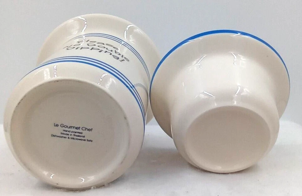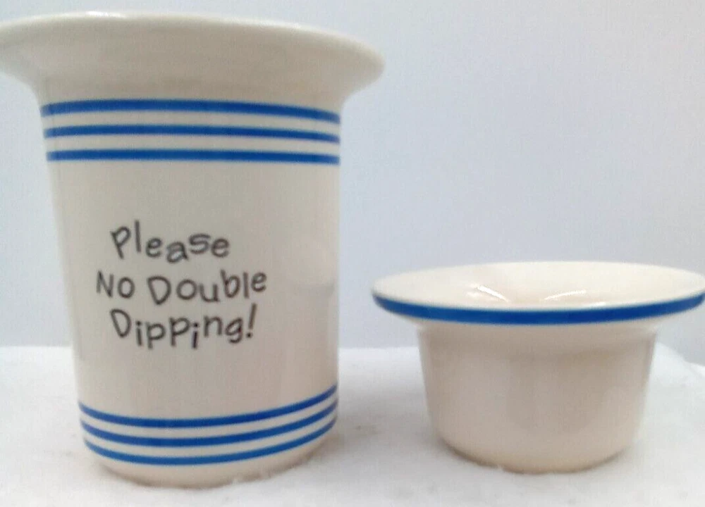 Dip Bowl Set Le Gourmet Chef Ivory Blue Stripe Please No Double Dipping 2 pc