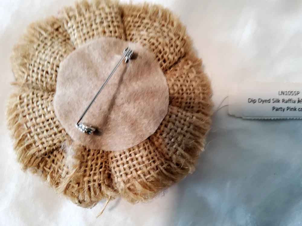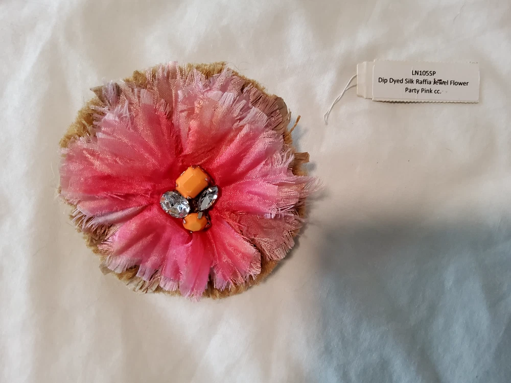 Signed:NoAntique:NoOccasion:Anniversary, Birthday, Christening, Confirmation/Communion, Mother's DayType:BroochItem Length:9inMaterial:SilkMain Stone Treatment:DyedMain Stone Color:Imitation DiamondVintage:NoCountry/Region of Manufacture:UnknownMetal:AluminumShape:RoundColor:PinkBrand:UnbrandedMain Stone:Diamond