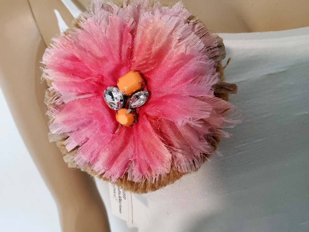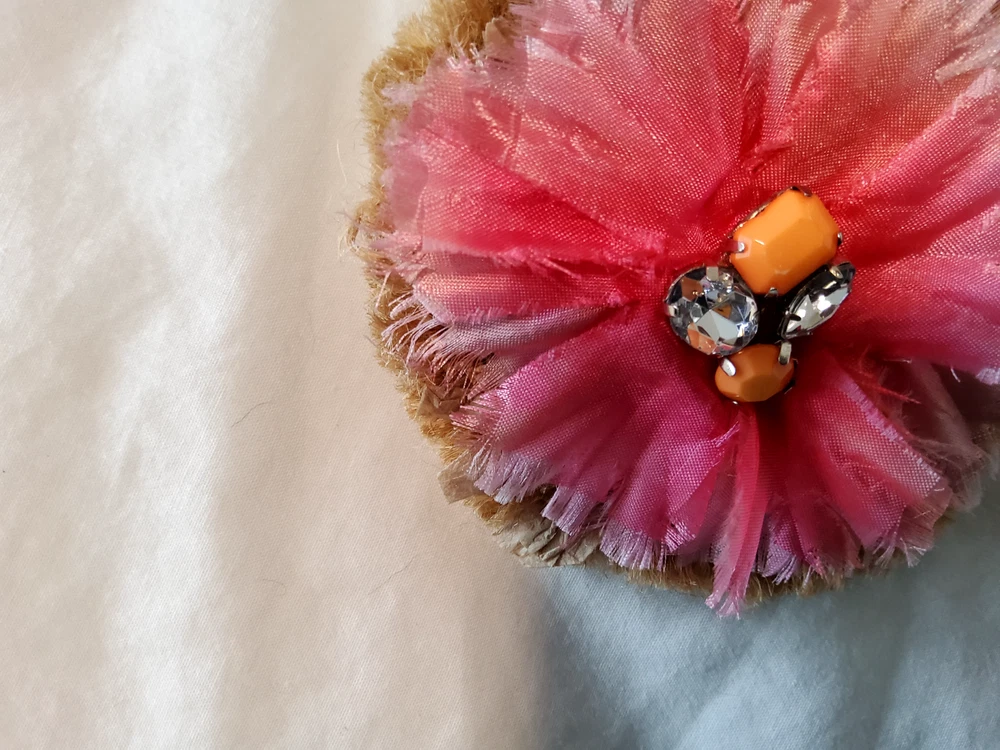 Dip Dyed Silk Raffia Jewel Beaded and Imitation Diamond Brooch