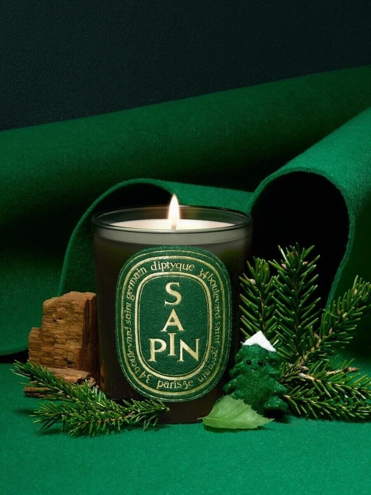 Scent: pine Features: Scented Color: Green Shape: Round Type: Scented Candle Brand: diptyque Theme: Christmas, Holiday, Valentine's Day