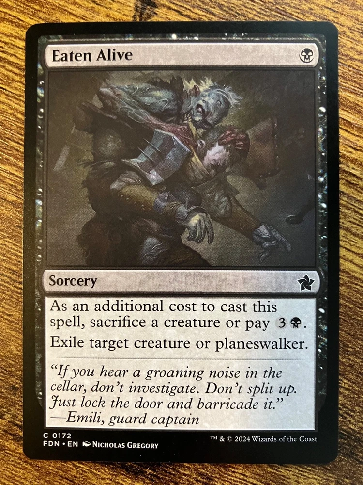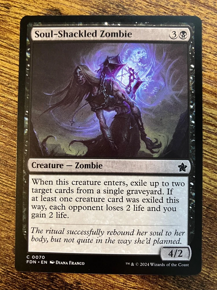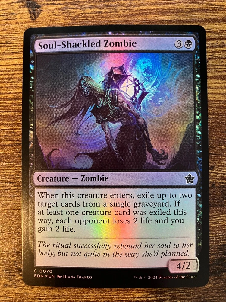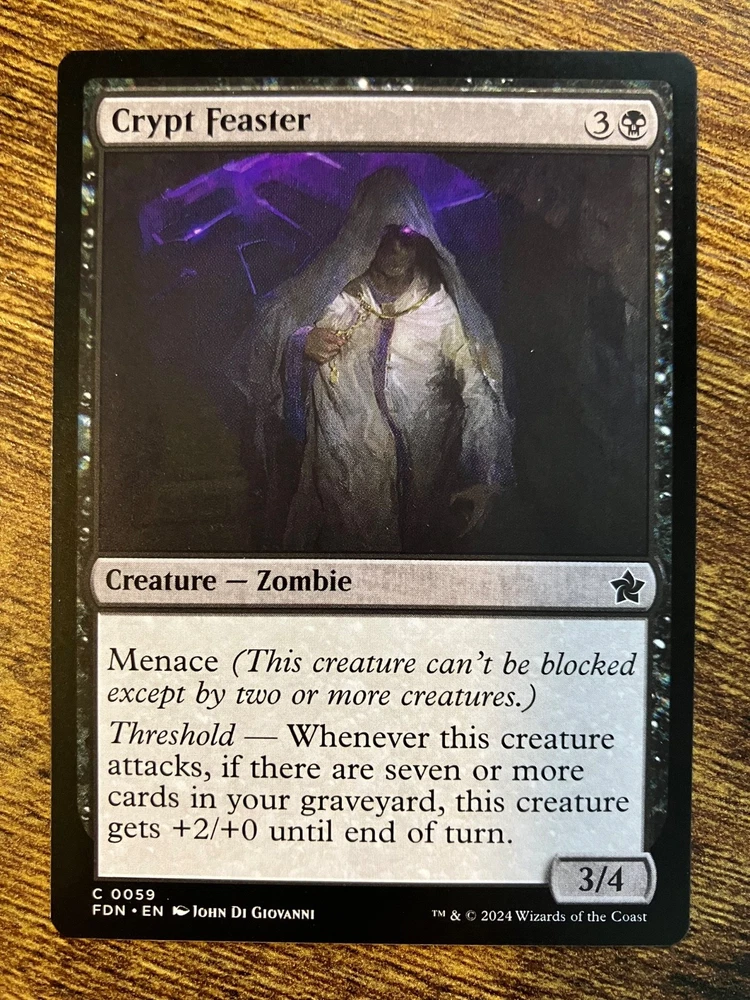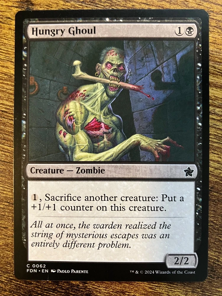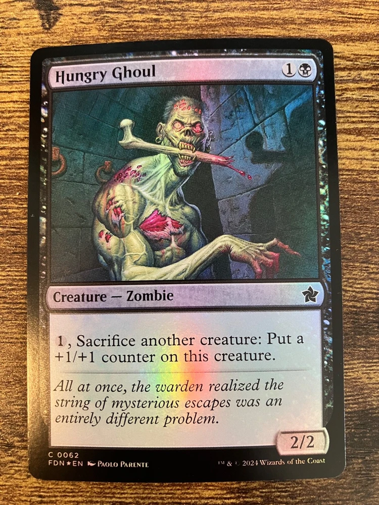 Attack/Power:2Card Type:CreatureLanguage:EnglishManufacturer:Wizards of the CoastRarity:UncommonCard Name:Diregraf GhoulCost:BGame:Magic: The GatheringIllustrator:Dave KendallDefense/Toughness:2Creature/Monster Type:Zombiebrand:Wizards of the CoastCard Number:171Finish:RegularSet:FoundationsAttribute/MTG:Color:BlackCard Text:This creature enters tapped.Additional Description:Diregraf Ghoul