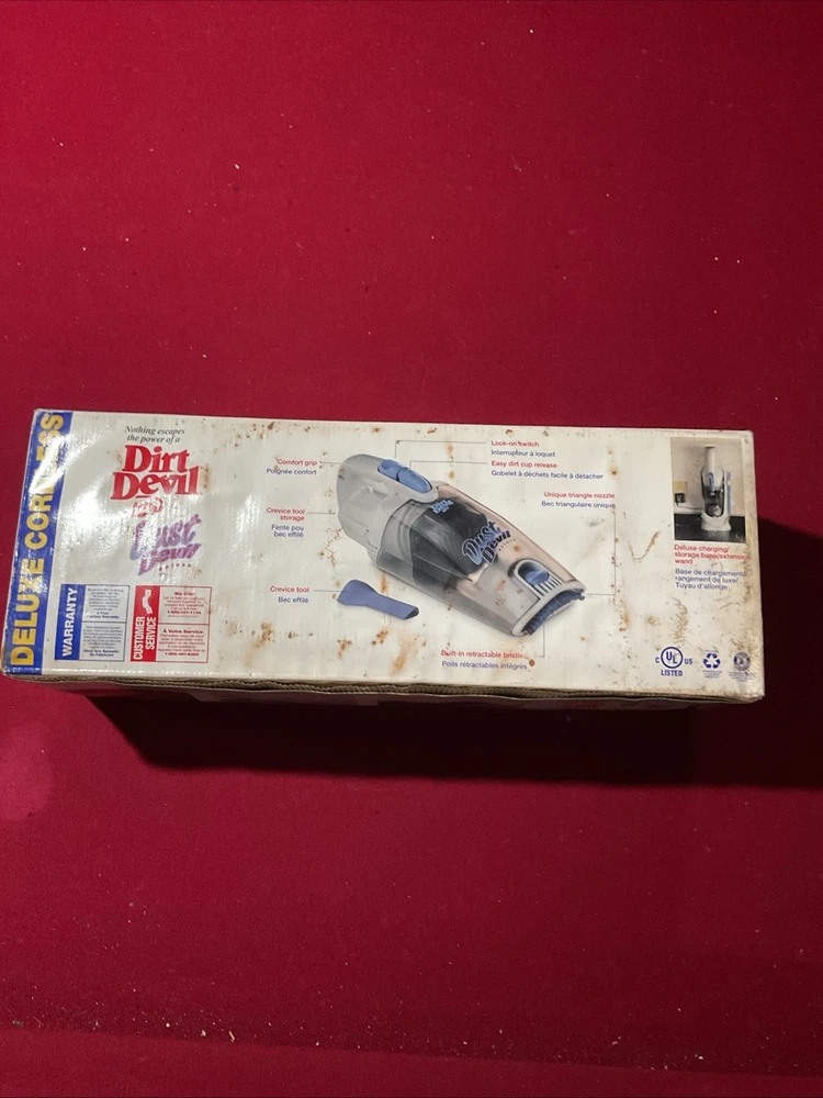 The Dirt Devil Dust Devil Deluxe Handheld Vacuum is a convenient and compact cleaning solution for any home. With its bagless design and cordless operation, it is easy to use and clean. The included extension wand makes it even more versatile for reaching tight spaces and corners. Perfect for quick cleanups or spot cleaning, this handheld vacuum by Dirt Devil is a reliable choice for keeping your home clean and tidy.
