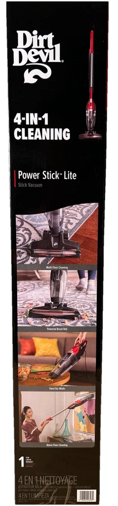 Dirt Devil Power Stick Lite 4-in-1 Corded Stick Vacuum, SD22030V Clean anywhere with 50% more power* using the versatile 4-in-1 Power Stick Lite. Its Directpath Technology gives you powerful suction and the Powered Brushroll works great on all floors. Pick up quick messes with the Removable Hand Vac and tackle hard to reach areas above floor by removing the powered floor nozzle and using the metal wand to clean up high. Take your vacuum anywhere with its lightweight design and enjoy the convenience of storing it anywhere.