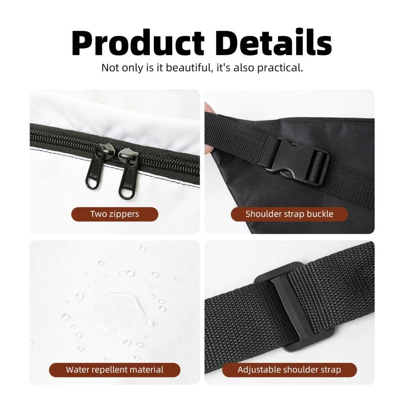 Product alias: Adjustable Running Waist Bag Production process: Transfer printing Product Material: Polyester Other Description: [Design Description] Full screen printing on the front, black fixed on the back 【 Material Description 】 Surface: 100% polyester, Inner: 100% polyester 【 Product Performance 】 The waist bag is made of high-quality materials that are waterproof, durable, and lightweight, ensuring comfort and long-term use. The waist bag has a large capacity and can easily accommodate items such as passport, phone, keys, ID card, etc. It provides spacious storage space and helps you maintain order. A waist bag can be worn around the waist, buttocks, or carried over the chest or shoulders. Suitable for various activities such as shopping, traveling, walking, cycling, traveling, parties, festivals, etc. This is a great gift for friends or family. 【 Accessory Structure 】 The waist bag has 2 main pockets, with a zipper opening and closing. The inner main pocket has a single pull tab and no inner patch pocket. The outer main pocket has double pull tabs and 2 inner patch pockets. The adjustable circumference range is between 80-150cm. [Washing instructions] It is recommended to wash by hand, not machine wash, do not iron, do not bleach, and it is durable. 【 Special note 】 Due to different measurement methods, an error of 1-3cm in this size data is considered normal. On Jan 7, 2025 at 22:52:39 PST, seller added the following information: