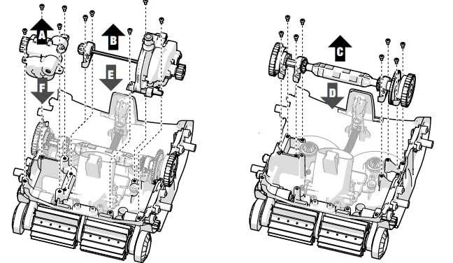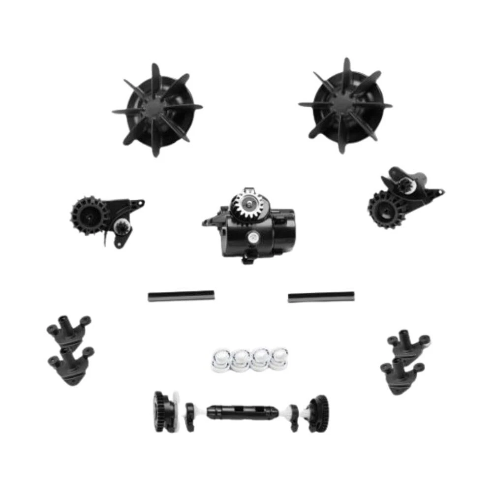 R0995100 Quattr Factory Tune-Up Kit for Genuine Polaris Suction-Side Pool Cleaners Drive Shaft Assembly Gear Box Assembly Right Side Brush Gear Box Left Side Brush Gear Box Axles (4) Wheel Bearings (8) Cyclonic Turbines (2)