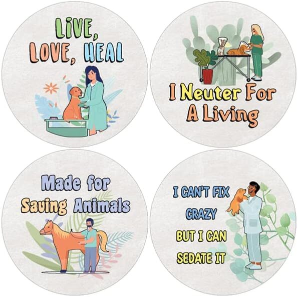 16 UNIQUE DESIGNS INSPIRING STICKERS FOR YOUR DIY PERSONALIZED DECORATIONS - Awesome Vet Stickers (10-Sheets x 16 Designs). These colorful and uniquely inspiring round shaped stickers are the best tool for DIY decoration and personalization of your belongings. GREAT STOCKING STUFFERS, TEACHING SUPPLEMENTARY MATERIALS, AND GIVEAWAY - Great stocking stuffers gifts for Vet, Doctors, Professionals, Animal Lovers, Men Women Teens. A perfect design to give during guidance sessions, classroom activities, school giveaways, birthdays, anniversaries, family day, and any other special occasions. MADE WITH DURABLE AND WATERPROOF MATERIALS - There is a lamination or coating to make the stickers high water resistant, and WILL NOT fade from the water. The stickers can stick it anywhere you like, and it sticks there and lasts a long time. A COLORFUL AND DECOR STICKER DECAL - Each sheet with 16 individual round stickers. There are 10 Sheets, with a total of 160 pieces of stickers. STICKER SIZE: 1.5 INCHES IN DIAMETER Awesome Vet Stickers (10 Sets X 16 Designs) COLORFUL AND COLLECTION OF TEXT STICKERS • Well designed. • Very encouraging. • Self-adhesive. Awesome Vet Stickers (10 Sets X 16 Designs) are super fun to collect; you can't have just one! That's why you will find a selection of stickers right here. Each package comes with different stickers in a variety of designs. Stick them here, stick them there, stick them everywhere! Everyone will love these self-adhesive stickers. These colorful stickers are perfect for any adults and these come with very inspiring messages and bright pictures. A fun, inexpensive way to add a decorative, notes, and stationery. Delight yourself with uplifting messages designs that are very encouraging. Awesome Vet Stickers (10 Sets X 16 Designs) perfect for giveaways, behavior incentives, prizes! These stickers are acid-free, nontoxic, and safe for use on photos. This product comes with a 60 days money back guarantee. You can return them to us for a full refund.