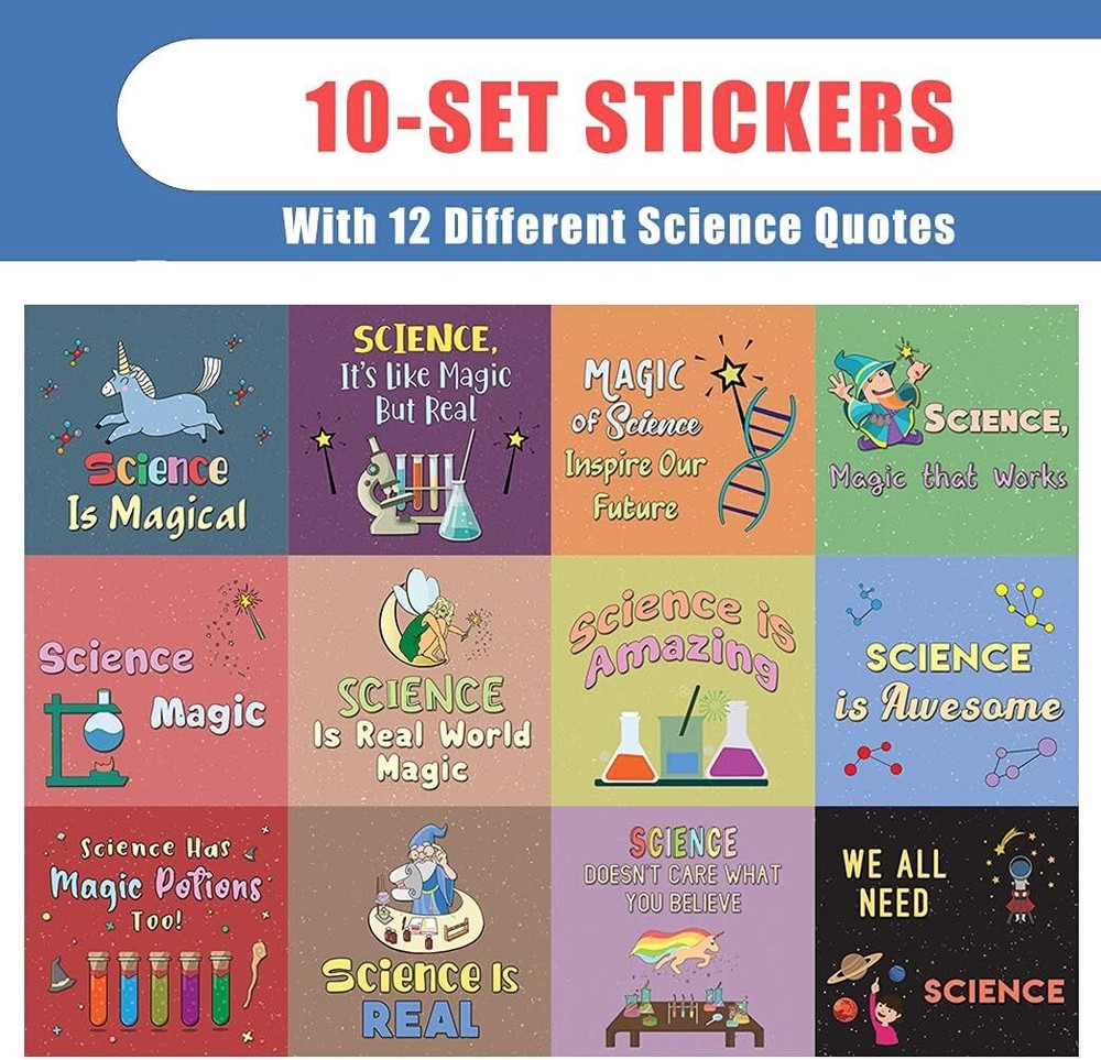 12 UNIQUE DESIGNS INSPIRING STICKERS FOR YOUR DIY PERSONALIZED DECORATIONS - Creanoso Science is Magic Stickers – 10 Sheet. These colorful and uniquely inspiring square shaped stickers are the best tool for DIY decoration and personalization of your belongings. WIDE APPLICATION ON ANY FLAT SURFACE - can be used on any flat surface as decoration and personalization of your belongings. These awesome stickers can be stuck on a laptop, notebook, water bottle, pencil box, lunch box, suitcase, hard hat & helmet, decal artworks, phone cover, bikes, bicycles, and many more. MADE WITH DURABLE AND WATERPROOF MATERIALS - There is a lamination or coating to make the stickers high water resistant, and WILL NOT fade from the water. The stickers can be stuck anywhere you like, and they stick there and last a long time. A LOT OF STICKERS FOR LOWER PRICE - Each sheet with 12 individual 2.1” x 2.0” square stickers. There are 10 sheets, with a total of 120 pcs of stickers. GREAT STOCKING STUFFERS, TEACHING SUPPLEMENTARY MATERIALS AND GIVEAWAY - Great stocking stuffers gifts for Kids, Teens, Adults. A perfect design to give during classroom programs, homeschooling, birthdays, gatherings, family day, physical activities, and any other special occasions. Science is Magic Stickers (10 Sets X 12 Designs) COLORFUL AND COLLECTION OF TEXT STICKERS • Well designed. • Very encouraging. • Self-adhesive. Science is Magic Stickers (10 Sets X 12 Designs) are super fun to collect; you can't have just one! That's why you will find a selection of stickers right here. Each package comes with different stickers in a variety of designs. Stick them here, stick them there, stick them everywhere! Everyone will love these self-adhesive stickers. These colorful stickers are perfect for any adults and these come with very inspiring messages and bright pictures. A fun, inexpensive way to add a decorative, notes, and stationery. Delight yourself with uplifting messages designs that are very encouraging. Science is Magic Stickers (10 Sets X 12 Designs) perfect for giveaways, behavior incentives, prizes! These stickers are acid-free, nontoxic, and safe for use on photos. This product comes with a 60 days money back guarantee. You can return them to us for a full refund.
