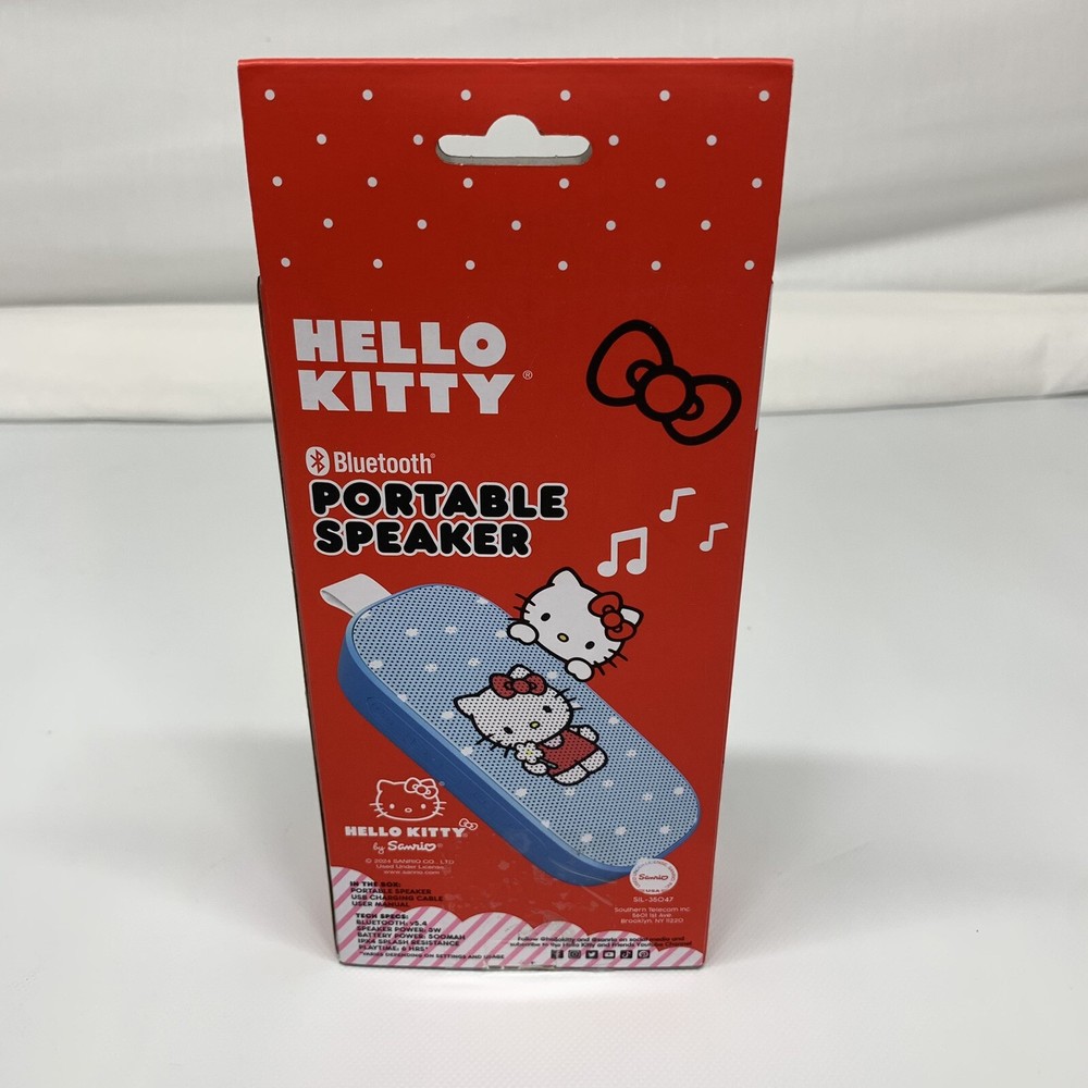 Hello Kitty by Sanrio Bluetooth Portable Speaker Volume Pricing New in box. 3 Available at time of listing. We are passing our shipping discount on to you. Thank you for Looking! We hope you will check out our other items as you never know what we may find. Our shipping might be a little more than others at times but that is because we pack things to withstand the worst that can happen to them. When you get your order in one piece and see the way it is packaged, we hope you will see why our cost to ship is higher at times than others. Materials to protect your order add weight and size to the package. We are continually looking for ways to reduce costs for you, but we will not reduce what we feel is the appropriate protection for your order. You will never get an order from us that is just tossed in a box free to move inside the box. Every order is packaged with its probably getting thrown or dropped at some point on its way to you in mind. All Clothing Items are cleaned before listing. Always open to reasonable offers.