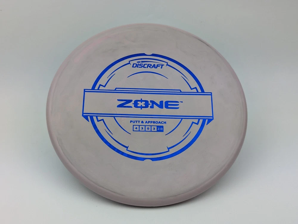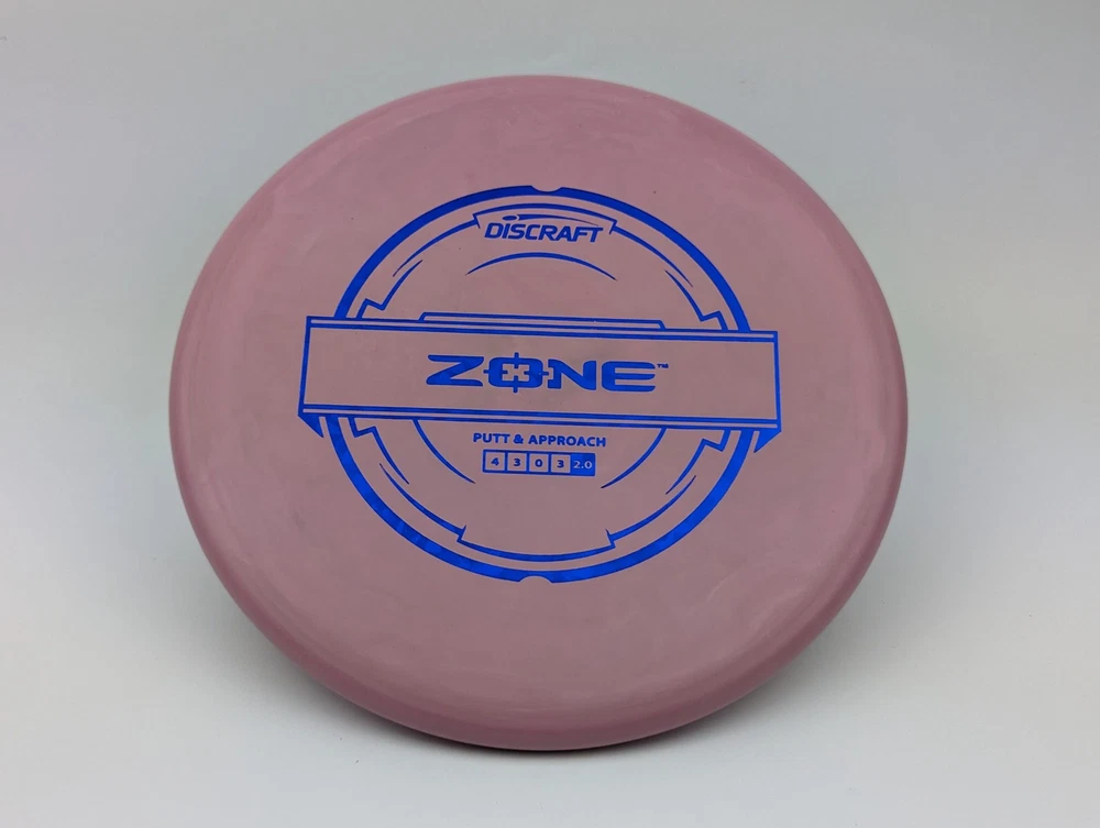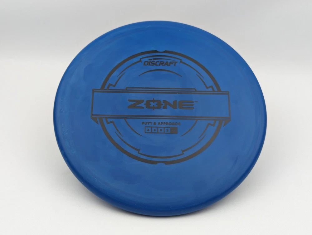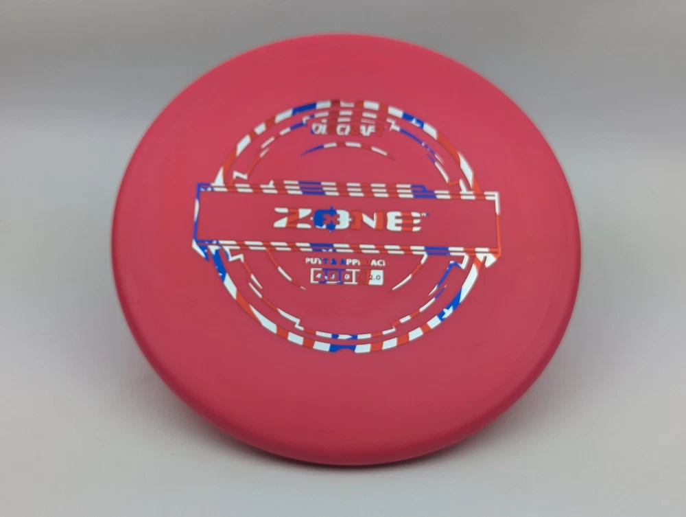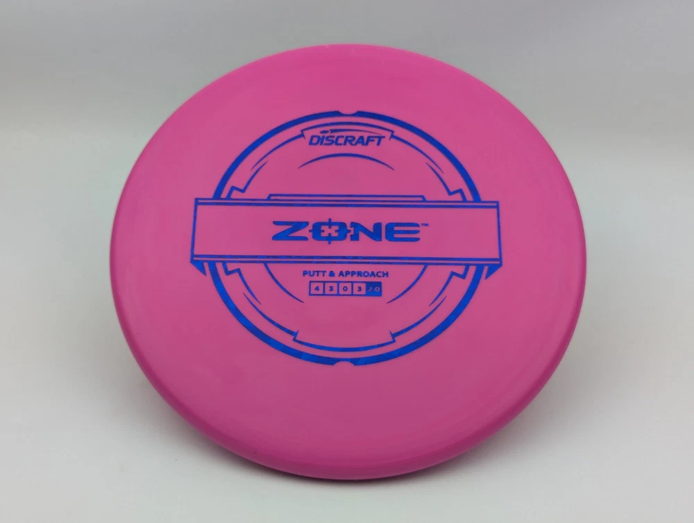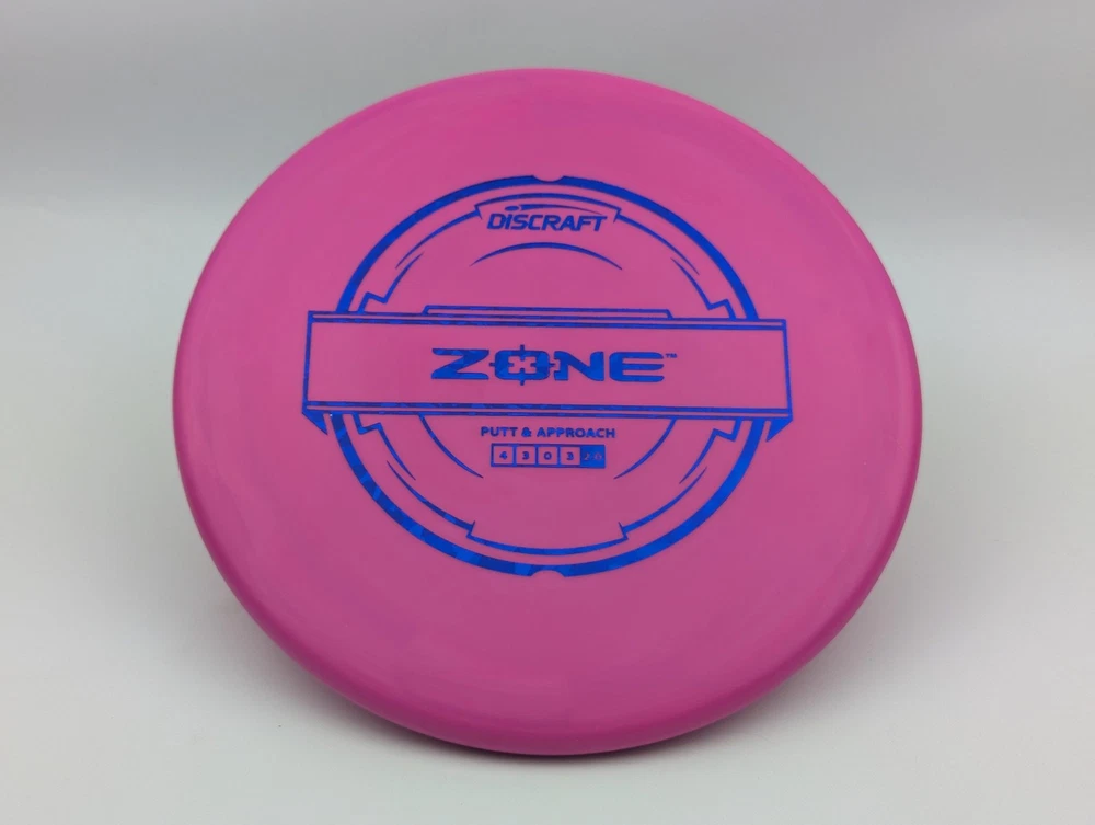 Speed 4 | Glide 3 | Turn 0 | Fade 3 The Zone overstable putt and approach disc is the go-to workhorse putter for dependable overstability in any conditions. Often used for technical approaches or powerful upshots for both forehand and backhand players. The disc pictured when you select a variation is the disc you will receive! Shipped in a bubble mailer for protection.