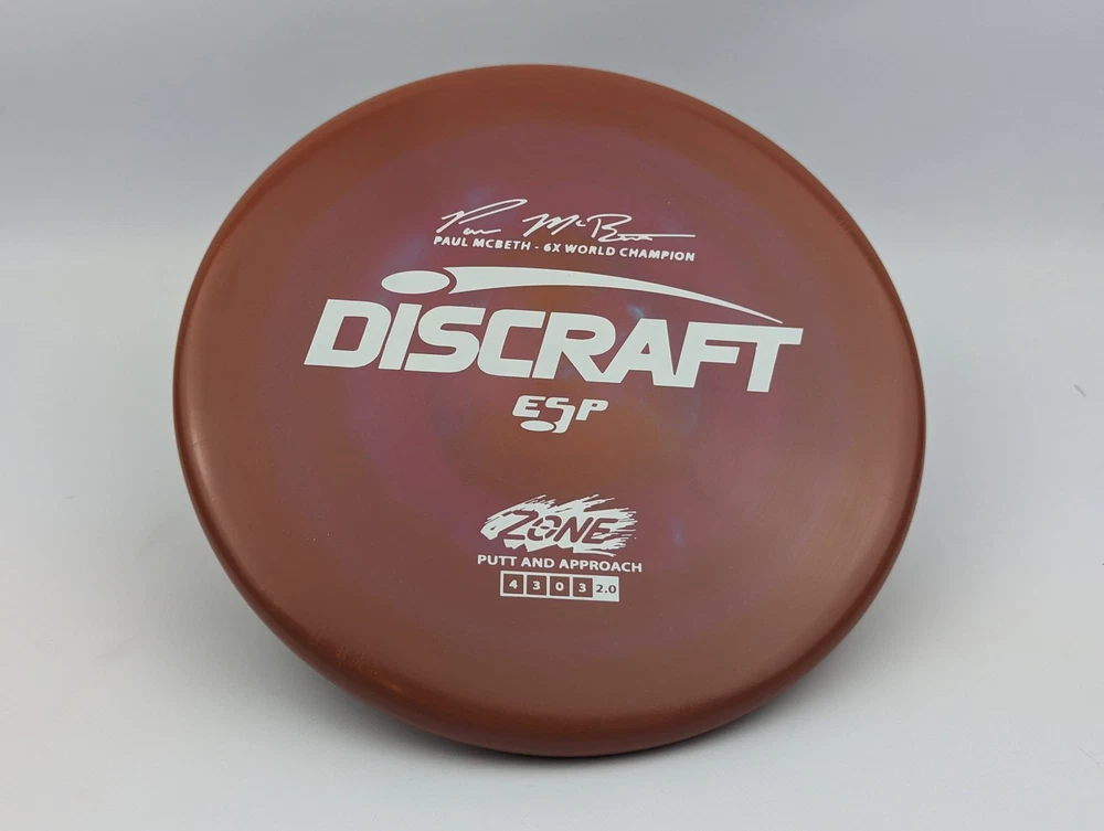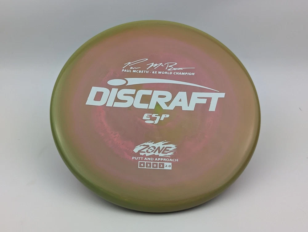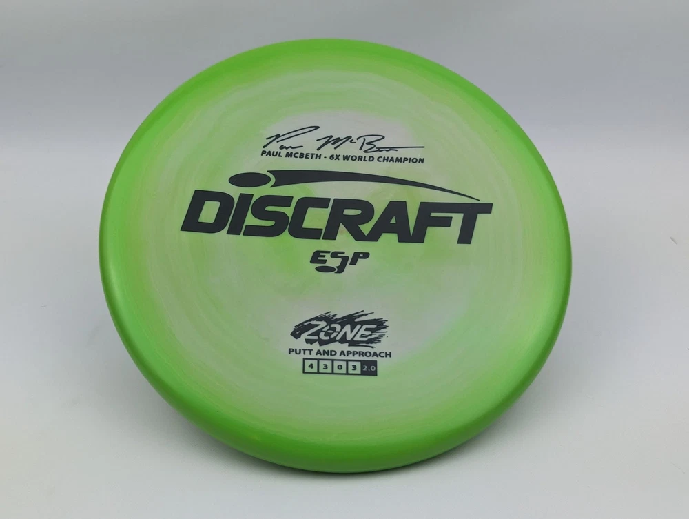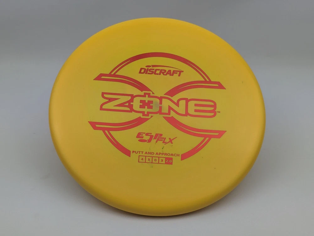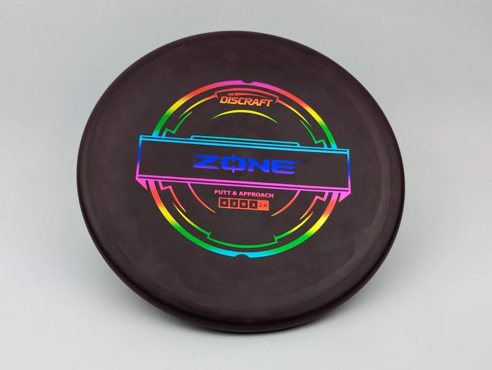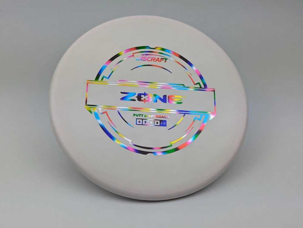 Speed 4 | Glide 3 | Turn 0 | Fade 3 The Zone overstable putt and approach disc is the go-to workhorse putter for dependable overstability in any conditions. Often used for technical approaches or powerful upshots for both forehand and backhand players. The disc pictured when you select a variation is the disc you will receive! Shipped in a bubble mailer for protection.