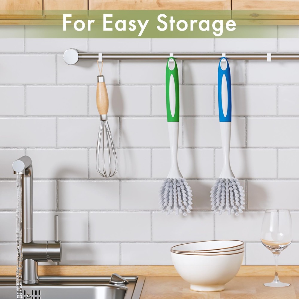 Dish Brush with Handle, 2 Pack Kitchen Scrub Brushes for Cleaning, Dish Scrubber with Stiff Bristles for Sink, Pots, Pans Quality & sturdy bristles: High elasticity kitchen scrub brush with PET fiber bristles is not easy to deform. Ideal for cleaning, pot, pans, cast Iron skillet, sinks, bathroom and fixtures. Scraper edge design: Kitchen brushes have a handy scraper built onto the front that is quite sturdy and helpful, dish scrubber with scraper easily removes stuck-on food or tough stains on sink. Dish scrubber with loop handle: Dish washing brush scrubber with loop long handle can be hung over the sink to keep dry and clean. The long handled brush protects your hands from getting wet and touching the washing-up liquid while cleaning most things. Comfortable grip: Dish cleaner brush with comfortable handle, easy to grip and won't slip in wet hands. Dishwasher safe, easy to clean and use. Ergonomic design: Dish scrub brush easy to apply force and allows for heavy duty cleaning in kitchen. The sink scrubber brush handle is ergonomic and provides a comfortable grip, making it easy to maneuver the brush. Product Features: - Set of 2 - Color: One set has two different colors. One is blue and white. The another one is green and white. - PET fiber bristles shape perfect for getting into corners. - Soft, comfortable grip won't slip out of wet hands. - Deep cleans without scratching. Multiple Uses Around the Home:The brush is perfect for cleaning pots, pans dishes and more. Quality You Can Count On:The brush made of premium quality materials, good grip on handle and does not require a lot of effort to scrub. Shipping We offer FREE shipping on all orders! We ship within Three business days of payment, usually sooner. We use a selection of shipping services such as UPS, FedEx, USPS etc. We only ship to the lower 48 states, no APO/FPO addresses or PO Boxes allowed. Local pickups and combined shipping options are not provided at this time. Return You can return a product for up to 30 days from the date you purchased it. Any product you return must be in the same condition you received it and in the original packaging. Please keep the receipt. Payment We accept payment by any of the following methods: PayPal Please pay as soon as possible after winning an auction, as that will allow us to post your item to you sooner! Feedback Customer satisfaction is very important to us. If you have any problem with your order, please contact us and we will do our best to make you satisfied. Contact Us If you have any queries, please contact us via ebay. We usually respond within 24 hours on weekdays. Please visit our eBay store to check out other items for sale! Thank you for shopping at our store.