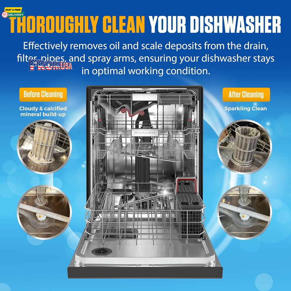 Menu Other Items Feedbacks About Us Contact Us Add To Favorites Dishwasher Cleaner Tablets - 24 Tablets (1-Year Supply) Lemon-Scented, Heavy Duty Cleaning Descaler Pods for Dish Washer, Deep Cleans & Maintains Your Dishwashing Machine for Optimal Performance 12-Month Supply for Continuous Cleaning: Get a full year of heavy-duty cleaning with 24 powerful tablets, perfect for keeping your dishwasher running smoothly month after month. Lemon Fresh Scent: Experience a burst of freshness with every cycle! Bastion Dishwasher Cleaner Tablets are infused with a delightful lemon scent, leaving your dishwasher smelling clean and fresh. Deep Cleaning Action for a Spotless Dishwasher: Effectively removes grease, grime, limescale, and buildup, ensuring your dishwasher operates at peak performance and stays sparkling clean. Easy to use: Just place one tablet in the dishwasher's detergent compartment and run a normal wash cycle. No mess, no hassle – just an incredibly clean dishwasher ready for your next load. Protects and Extends Dishwasher Lifespan: Regular use helps prevent clogs, buildup, and unpleasant odors, extending the lifespan of your dishwasher and ensuring it continues to function optimally. Ideal for all major dishwasher brands. Product description Discover More From Bastion Add to Cart Add to Cart Add to Cart Add to Cart Add to Cart Add to Cart Customer Reviews 4.5 out of 5 stars 1,625 4.0 out of 5 stars 109 4.5 out of 5 stars 205 4.5 out of 5 stars 3,850 — 4.3 out of 5 stars 612 4.4 out of 5 stars 1,500 Price $9.99 $ 9 . 99 $16.95 $ 16 . 95 $17.95 $ 17 . 95 $9.99 $ 9 . 99 — $19.95 $ 19 . 95 $23.95 $ 23 . 95 Intended Use: Dishwasher Garbage Disposal Coffee Machine Washing Machine Multi-Use Toilet Tank Garbage Disposal Contents: 24 Tablets 24 Tablets 24 Tablets 24 Tablets 7 oz of Power Gel 6 Packets 24 Packets Form: Tablet Tablet Tablet Tablet Gel Powder Packet Scent: Lemon Citrus Unscented Unscented Unscented Unscented Citrus Cleans: ✔ ✔ ✔ ✔ ✔ ✔ ✔ Descales: ✔ ✘ ✔ ✔ ✘ ✔ ✘ Maintains: ✔ ✔ ✔ ✔ ✔ ✔ ✔ Item Specification Item model number RBDWC24 Item Form Tablet Brand Bastion Package Dimensions 7.17 x 6.57 x 0.67 inches; 3.53 ounces Material Feature Biodegradable, Cruelty Free, Vegan Scent Citrus, Lemon Specific Uses For Product Dishwasher Manufacturer Rutledge Brands Dimensions Shipping Returns Additional Info Product Dimensions: 6.57 inches x 7.17 inches x 0.67 inches. Weight: 3.53 oz Fast shipping is very important for us. Our standard shipping service is FREE. Your order will be shipped within 1-3 business days upon full payment received. Most items are delivered within 3-5 business days, however, please allow 3-10 business days. We are shipping only to USA. We only ship to the confirmed Paypal address. We reserve the right to cancel any order for any reason at any time. We are not responsible for undeliverable addresses. We offer a 30 day return policy from checkout winning date. Your satisfaction is guaranteed! If for any reason you are unhappy with your item, just return it within 30 days for a full refund, minus shipping cost. Please contact us prior to initiating a return so that we can issue you a refund authorization. Items defective upon receipt must be packaged in their retail packaging as if new and returned with a detailed description of the problem. Return shipping fees are not refundable. We reserve the right to decline any returns if the above guidelines are not followed. All of our items, unless otherwise stated, will only run on 120 volts. Please check to make sure your country complies with these specifications. If you have a problem or question regarding your transaction please contact us before leaving any type of feedback. We will work with you to resolve any problem you may have.