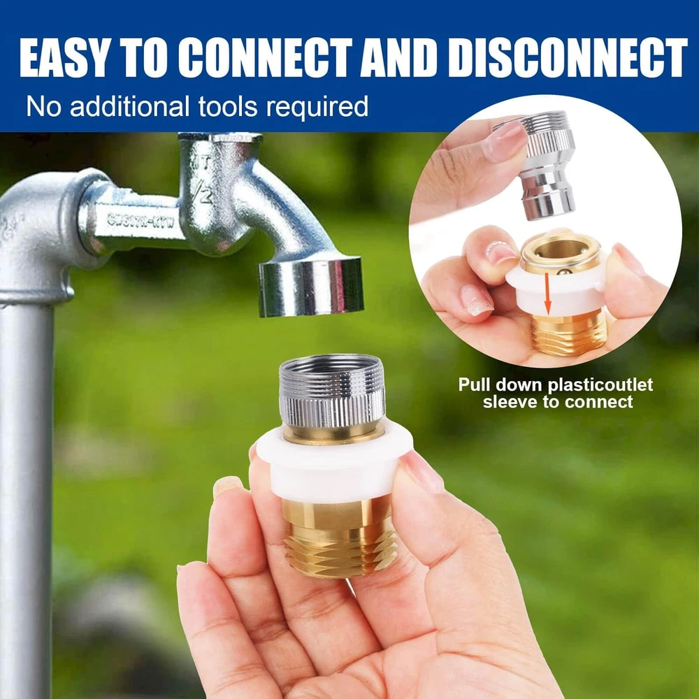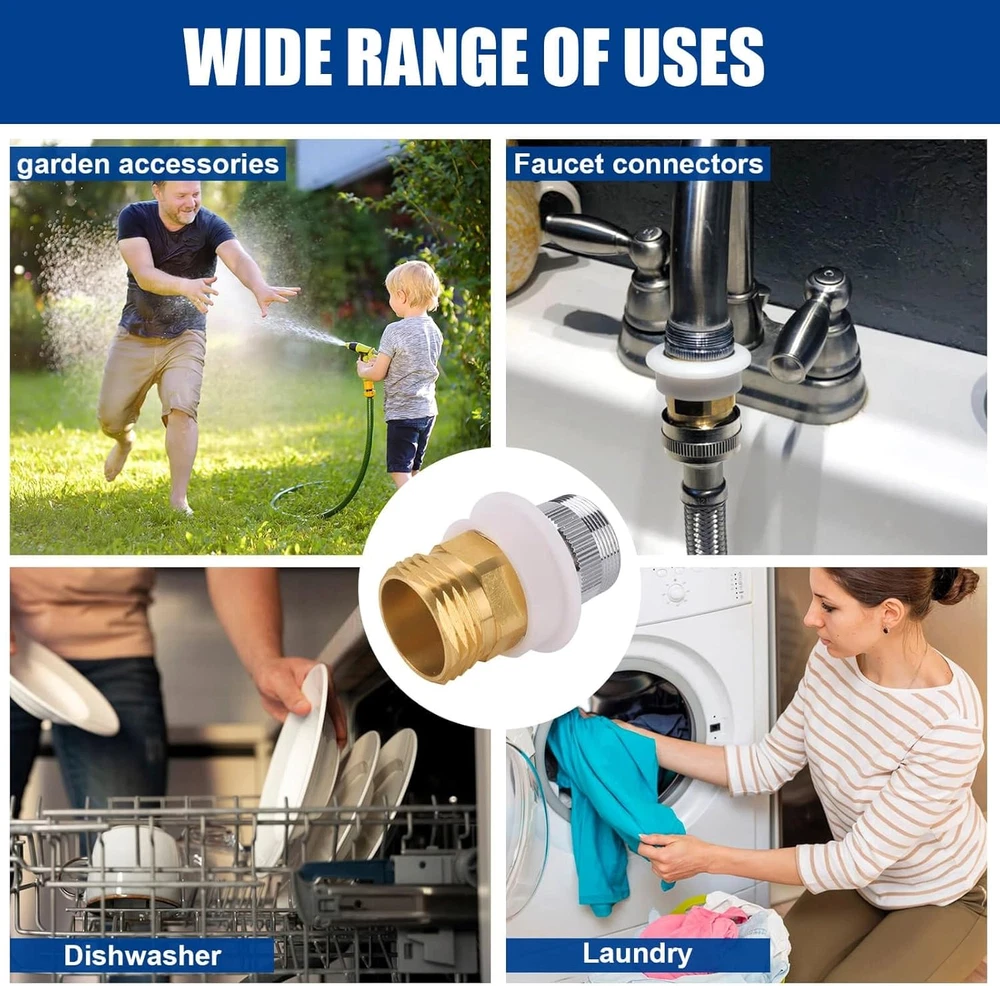 Dishwasher Snap Adapter fits Male 15/16-27 or Female 55/64-27 x Male 3/4.Garden Hose Fitting Fits standard kitchen sink, bathroom and laundry faucets. Solid Brass Quick Connector Compatible with DANCO washers, portable dishwashers, and humidifiers. Dishwasher Snap Coupling adapter Made of solid brass with chrome-plated construction for durability and protection from rust and corrosion, superior to plastic hose quick couplings. Dishwasher Quick Coupling Adapter fits garden hoses with 15/16-27 male threads or 55/64-27 female threads x 3/4 male threads. Dishwasher Adapter with snap-on connection can be quickly installed in minutes without any tools,Also used for garden hose quick couplings. Product Description Dishwasher Snap Coupling Adapter fits Male 15/16-27 or Female 55/64-27 x Male 3/4 garden hose. Dishwasher Faucet Adapter compatible with DANCO Dishwashers, Portable Dishwashers and Humidifiers. Easy connection to indoor and outdoor taps Dual Thread Dishwasher Snap Coupling Adapter for DANCO Portable Washing Machines Dishwasher Made from solid brass with chrome plated construction for durability and protection against rust and corrosion, superior to plastic quick connect hose couplings. Dishwasher Snap Coupling Adapter Also used for garden hose quick couplings Portable dishwasher sink connector Easy and quick connection without tools Chrome plating process can prevent rust and corrosion Addition of rubber seals can prevent splashing water Dishwasher Snap Adapter fits Male 15/16-27 or Female 55/64-27 x Male 3/4.Garden Hose Fitting Fits standard kitchen sink, bathroom and laundry faucets. Solid Brass Quick Connector Compatible with DANCO washers, portable dishwashers, and humidifiers. Dishwasher Snap Coupling adapter Made of solid brass with chrome-plated construction for durability and protection from rust and corrosion, superior to plastic hose quick couplings. Dishwasher Quick Coupling Adapter fits garden hoses with 15/16-27 male threads or 55/64-27 female threads x 3/4 male threads. Dishwasher Adapter with snap-on connection can be quickly installed in minutes without any tools,Also used for garden hose quick couplings Faucet Adapter Dishwasher Faucet Adapter Plug