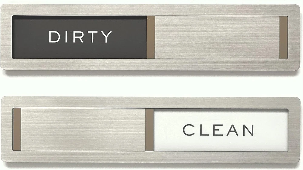 Stainless Steel [PREMIUM DISHWASHER MAGNET]- With a sleek and modern design, this stainless steel dishwasher magnet easily slides to indicate whether your dishes are clean or dirty. A household and kitchen essential, these clean/dirty signs will keep your family organized and worry-free! [STRONG, NON-SCRATCHING MAGNETS]- Built with strong, non-scratch magnets, this dishwasher sign easily attaches to your dishwasher door. Double-sided adhesive tape is included for non-metal dishwasher doors. [DURABLE QUALITY]- Durable and sturdy, these dishwasher magnets are built with expert craftsmanship and the highest quality materials for years of use. Crafted to stand the test of time, these clean/dirty dishwasher magnets will last for years to come. [304 GRADE STAINLESS STEEL]- Unlike many other dishwasher signs, we use premium, anti-rust stainless steel. These magnets will provide an attractive look that seamlessly matches all your other kitchen appliances. [READY-TO-GIFT PACKAGING]- An essential item in every home, our stainless steel dishwasher signs are the perfect gift for families, friends, and colleagues. Packaged in modern, visually pleasing packaging, our magnets arrive ready-to-gift! [PROUDLY MADE IN INDONESIA] - You didn't hear much from us, did you? Well, try this one and be amazed with how well our workmanship is. Product Description Introducing Kubik Letters Stainless Steel Dishwasher Magnet: The video showcases the product in use. The video guides you through product setup. The video compares multiple products. The video shows the product being unpacked. The perfect solution for adding a sleek and modern touch to your kitchen. It's perfectly matched. Designed to seamlessly blend in with any stainless steel dishwasher, this magnet creates a harmonious and integrated look. Crafted from high-quality stainless steel, our dishwasher magnet is not only durable and long-lasting, but also resistant to rust and corrosion. Its minimalist design and slim profile ensure that it complements the clean lines and contemporary aesthetics of modern kitchens. Experience the beauty of integration with Kubik Letters Stainless Steel Dishwasher Magnet. Soft magnet covered with vinyl film to protect your dishwasher door. We took an extra step to ensure the protection of your dishwasher door by covering the soft magnet with a vinyl film. This additional layer serves as a protective barrier, safeguarding your dishwasher door against scratches and rust. With its strong magnetic backing, installation is quick and hassle-free. If your dishwasher door is magnetic, simply place the magnet on the front of your dishwasher, and it will securely attach without any adhesive or additional tools required. Our Dishwasher Magnet is compatible with non-magnetic dishwasher doors as well. In the package, we have included two adhesive tapes specifically designed for non-magnetic dishwasher doors. These tapes allow you to easily attach the Stainless Steel Dishwasher Magnet to your dishwasher door, even if it is not magnetic. Simply apply the adhesive tape to the back of the magnet and firmly press it onto the surface of your dishwasher door. With the included adhesive tapes, you can enjoy the integrated look of our Stainless Steel Dishwasher Magnet on any type of dishwasher door. Easy to switch. Easy to read. But our Dishwasher Magnet is more than just a stylish accessory. It is also functional and practical. The magnet features clear and easy-to-read indicators, allowing you to conveniently switch between "Clean" and "Dirty" with a simple slide. This helps you keep track of your dishwasher's status and ensures that your family members are aware of it as well. Upgrade your kitchen today with our Stainless Steel Dishwasher Magnet and enjoy the seamless blend of style and functionality. Consider Other Kubik Letters Products for Your House Needs: Add to Cart Add to Cart Add to Cart Add to Cart Add to Cart Add to Cart Add to Cart Customer Reviews 4.8 out of 5 stars 2,396 4.7 out of 5 stars 59 4.8 out of 5 stars 3,142 4.8 out of 5 stars 137 4.8 out of 5 stars 137 4.8 out of 5 stars 137 4.8 out of 5 stars 142 Price $14.95 $ 14 . 95 $12.95 $ 12 . 95 $9.95 $ 9 . 95 $17.95 $ 17 . 95 $17.95 $ 17 . 95 $17.95 $ 17 . 95 $17.95 $ 17 . 95 Adhesive Tapes Included ✔ ✔ ✔ ✔ ✔ ✔ ✔ Magnetic Backing ✔ ✔ ✘ ✘ ✘ ✘ ✘ Installation Without Tools ✔ ✔ ✔ ✔ ✔ ✔ ✔ Material Stainless Steel 304 Black Frosted Acrylic Silver Grey Acrylic Black Frosted Acrylic Black Frosted Acrylic Black Frosted Acrylic Black Frosted Acrylic Size 7" x 1.6" 7" x 1.6" 8.3" x 2.4" 8.9" x 5" 8.9" x 5" 8.9" x 5" 8.9" x 5"
