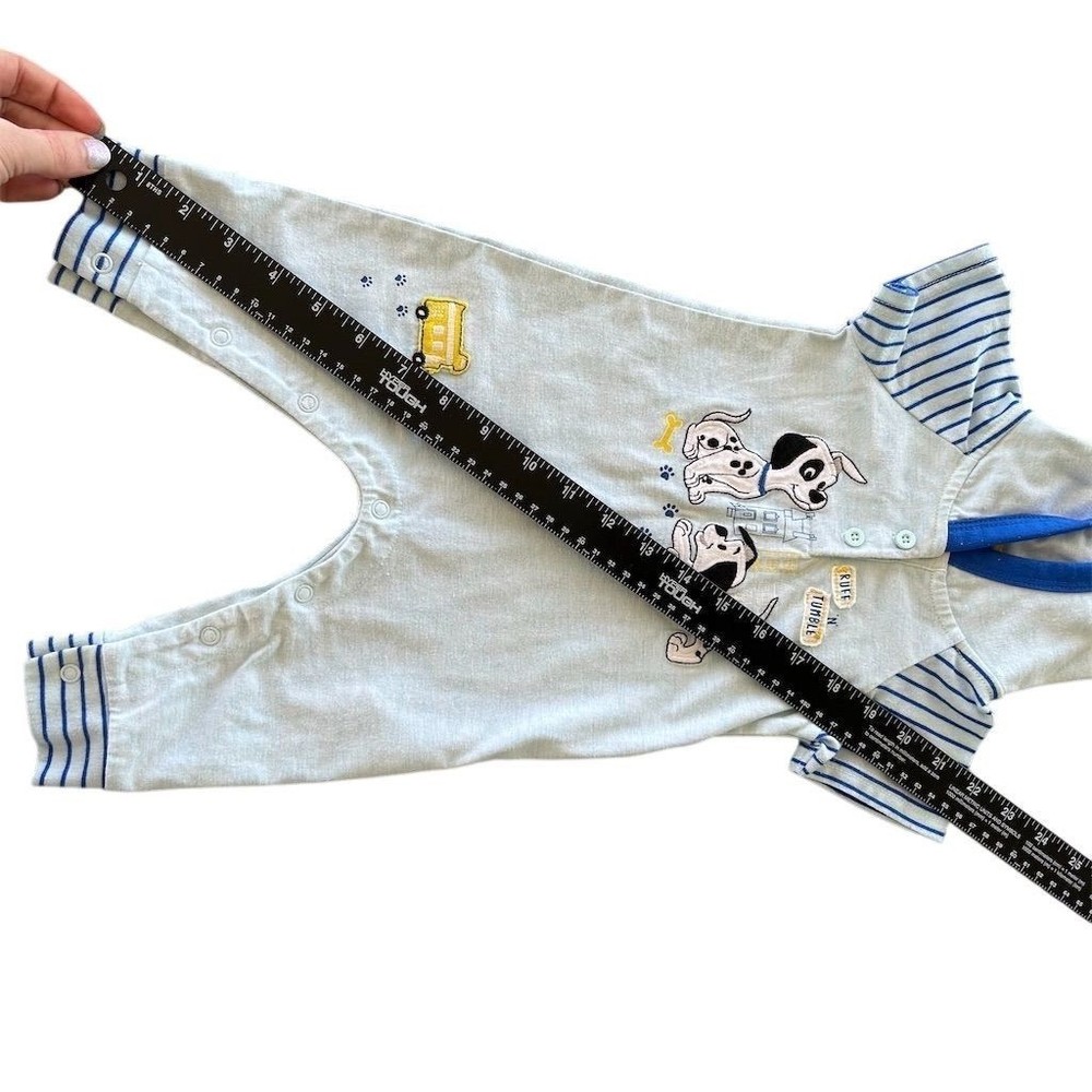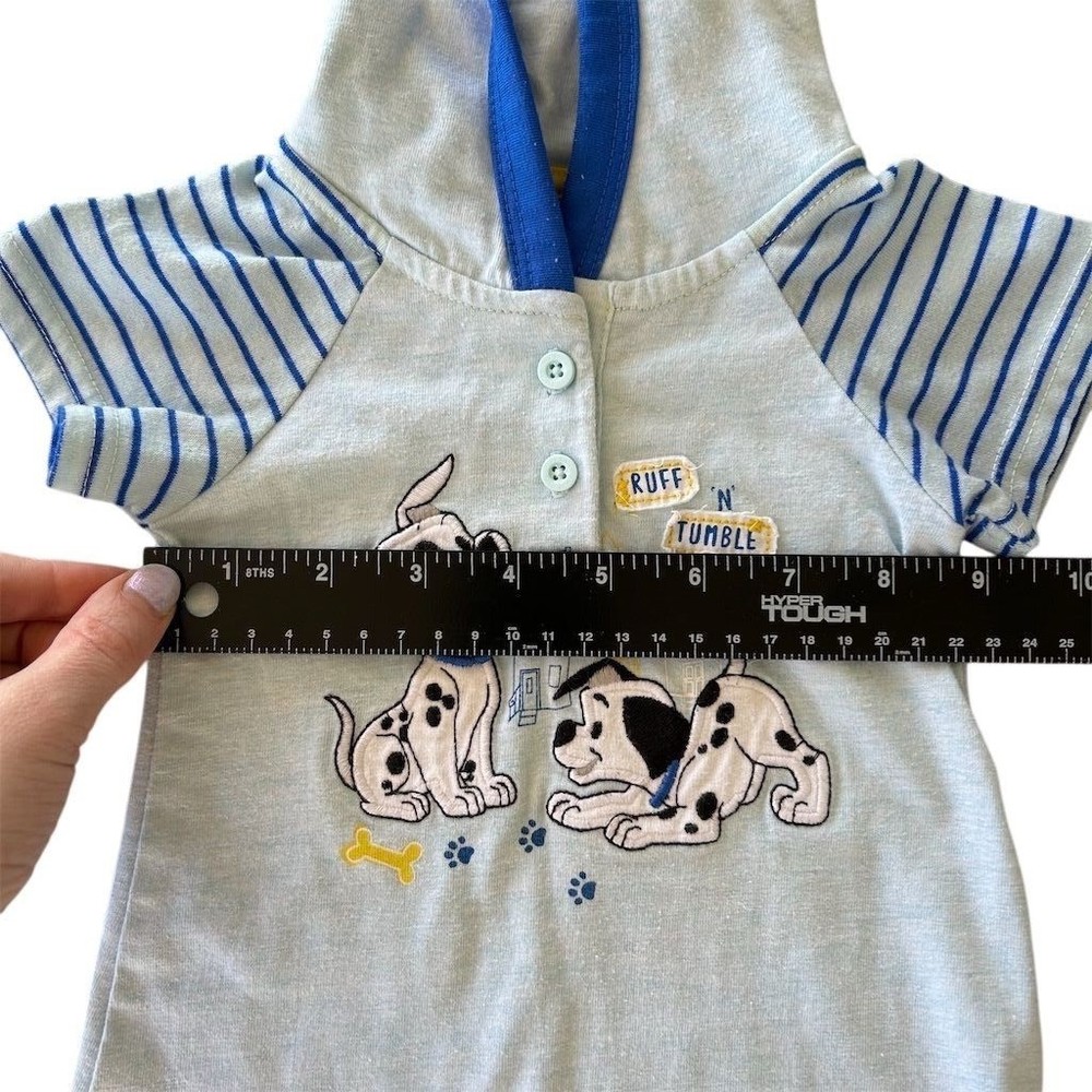 Disney baby 101 Dalmatians romper in light blue with playful puppy graphics and striped accents. Features a short-sleeved hooded design with snap closures for easy dressing. A fun and comfortable choice for playtime or naptime. Measurements: • Length (shoulder to inseam): 17 in • Chest (underarm to underarm): 10 in • Inseam: 5 in Department: Unisex Baby & Toddler Style: Romper Character: 101 Dalmatians Theme: Novelty Character Family: Disney Fabric Type: Knit Set Includes: Hoodie Pattern: Striped Material: Cotton Number of Pieces: 1 Piece Occasion: Casual Features: Hooded, Pockets, Cuffed Sleeve Length: Short Sleeve Accents: Embroidered, Button Keywords: Disney, 101 Dalmatians, baby boy, romper, hooded, short sleeve, snap closure, puppy print, character, one piece, sleepwear, loungewear All items come from a smoke free, pet friendly home. All of items unless NWT or Dry Clean Only are washed with Tide. We try our best to disclose any flaws with items, if we miss something please reach out and let us know. We offer combined shipping on all our items. We do take measurements of our clothing listed for sale. Please compare the measurements to something you already own.