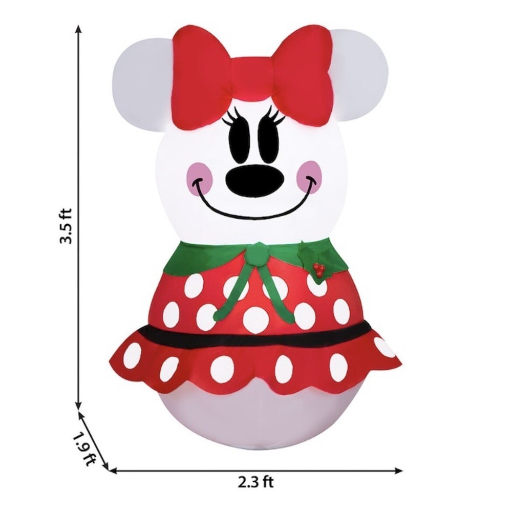 This adorable Minnie Mouse snowman inflatable is the perfect holiday decoration! The bright LED lights make it stand out at night, and the cute design brings festive Disney magic to my yard. It was easy to set up and stays inflated even in light wind. My neighbors love it!