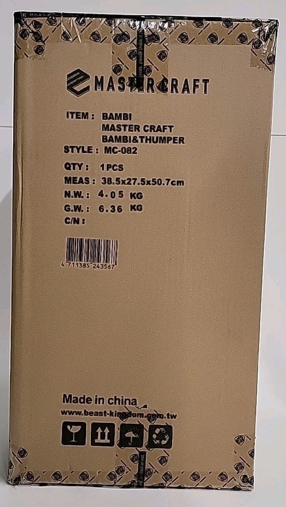 The Disney Bambi Master Craft Bambi & Thumper Statue by Beast Kingdom (MC-082) is a beautifully crafted collectible featuring characters from the beloved Bambi movie. This original licensed reproduction showcases the iconic characters of Bambi and Thumper in a detailed statue form, perfect for any Disney fan or collector. Packaged in an open box, this cartoon and TV character-themed piece was manufactured in the current time period and is sure to be a delightful addition to any collection. 📍I1