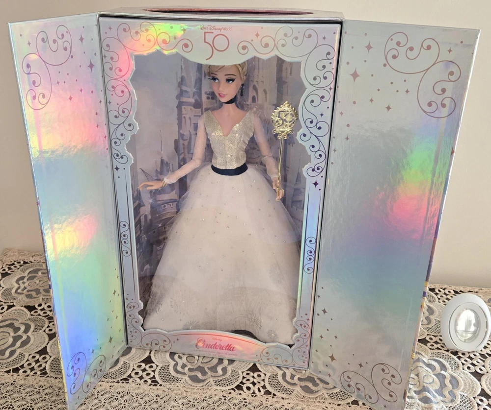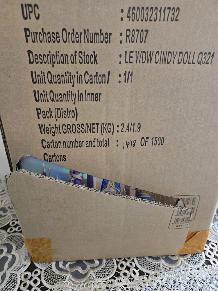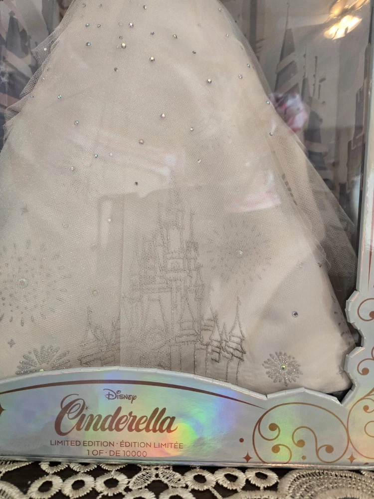 This listing is for the Gorgeous doll shown. I bought this doll in Europe from ebay and had it shipped to US. This was my first and last time ordering from UK. Since the custom house was too lazy to open the box, so they just cut the shipper box, leaving an indentation mark on the front panel of the doll's box. The pictures are included. It's only visible under a certain angle. It seems Disney made only 1500 of these dolls, based on the cardbox numbers. Also her skirt was attached differently, I noticed the castle embroidery is on the front now. Photos also included. I actually find it unique. Please review pictures since this is the doll you will receive. I'm a collector, purchased this doll from ebay. Unfortunately I have to sell her due to personal reasons. Please see the photos as they are part of the description. Any questions please ask. This is a smoke and pet free home. Thank you for checking out this item!