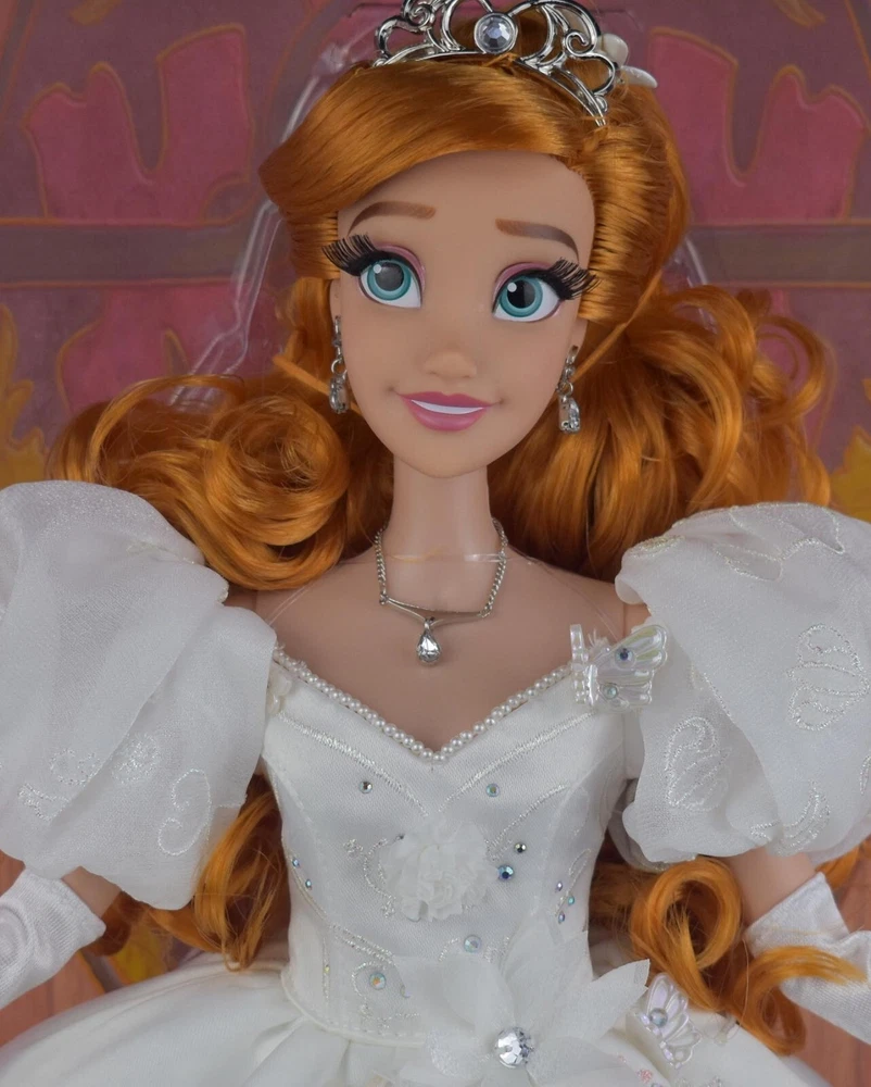 Introducing the limited edition Disney D23 2022 17" Giselle Enchanted doll, celebrating the 15th anniversary of the beloved Disneyana collectable. This rare and highly sought-after doll is the perfect addition to any Disney or doll enthusiast's collection. Featuring Giselle, the beloved character from the Enchanted story, this doll is a must-have for fans of the movie and the Disney franchise. With its exquisite design and attention to detail, this doll is sure to enchant collectors of all ages. Don't miss out on the opportunity to own this rare piece of Disney history.