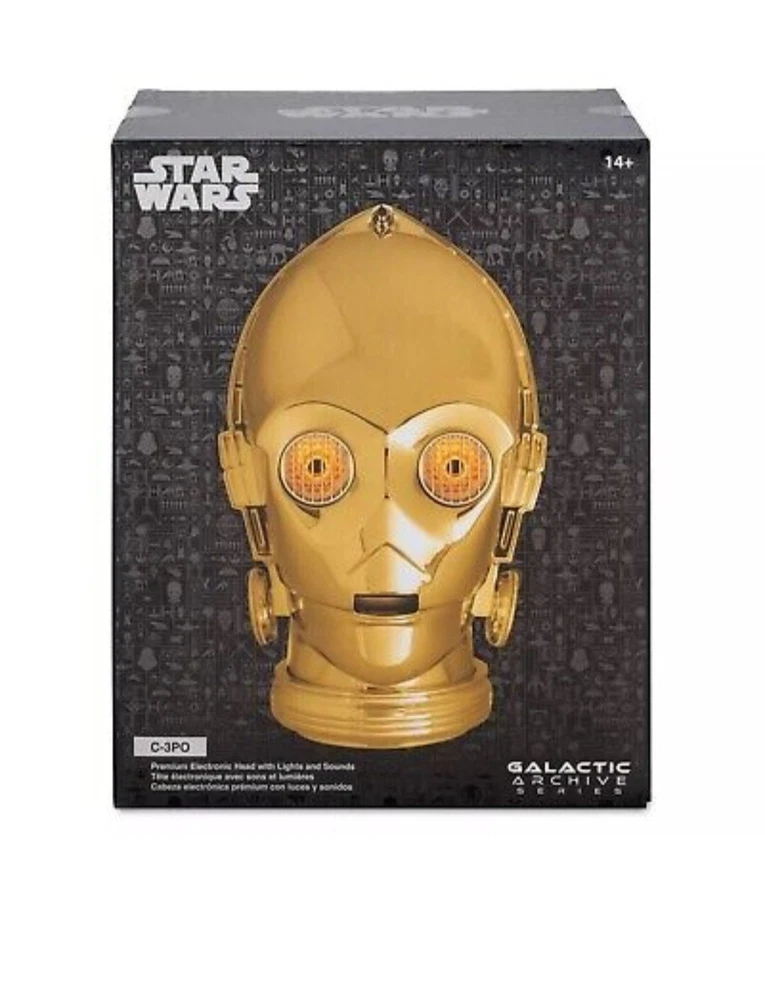 This Disney D23 Expo Star Wars Galactic Archive Series C-3PO Light Sounds Helmet is a must-have for any Star Wars fan. This helmet features the iconic C-3PO character from the Galactic Archive Series and is perfect for collectors or anyone who wants to add a touch of science fiction and horror to their collection. The helmet is made in China and is not vintage. It is not signed, but it does come with a California Prop 65 Warning. This item is perfect for anyone who loves the Star Wars franchise and wants to add a unique piece to their collection.
