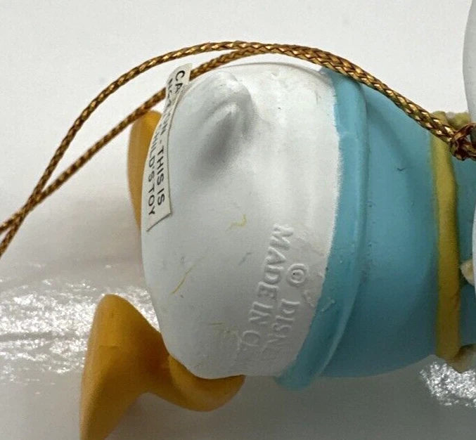 This vintage Disney DCA Donald Duck Flying Angel Christmas Ornament #003906 is a must-have for any collector or fan of the iconic character. The multicolored ornament features Donald Duck in his angelic form, flying through the sky with his wings spread out. The ornament comes with its original box, making it a great addition to any holiday décor or year-round display. The ornament is perfect for Christmas occasions and is sure to bring joy to any Disney enthusiast. The brand is Disney and the type is Donald Duck Angel, making it a unique and sought-after piece. Add this to your collection or give it as a gift to a fellow fan. Pre-owned condition. See photos.