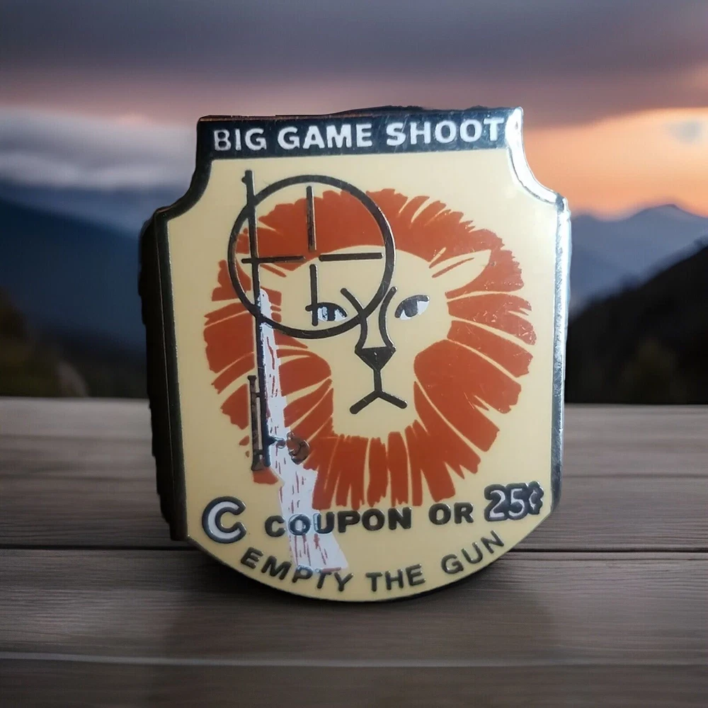 40142 Disney Direct 50th Anniversary Adventureland Set Big Game Shoot gun X55. Condition is New. Shipped with USPS First Class Package. This silver-metal pin shows a lion, a rifle, and scope crosshairs. It also reads: "Big Game Shoot," "C Coupon or 25¢," and "Empty the Gun." Backstamp includes: the Disneyland 50th Anniversary castle logo with a star over it, "LE 1500," a sylized "© Disney," and "China." From set 39972. Individual Pins from set: 40137, 40138, 40139, 40141, 40142, 40143, 40144, 40145 Origin: DisneyCatalog/DisneyShopping/DisneyStore Limited Edition: 1500 SKU Number: 95570 (set) Original Price: $34.95 (for set) Released: July 15, 2005 Keyword Lion king Gun shoot jungle animal kingdom simba mufasa scar