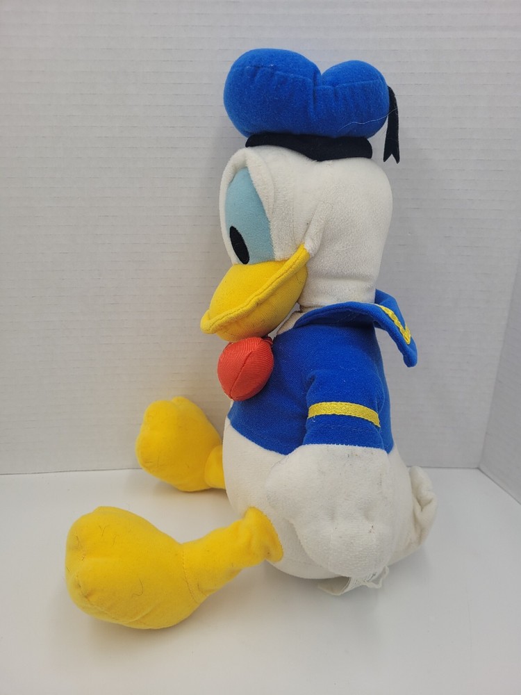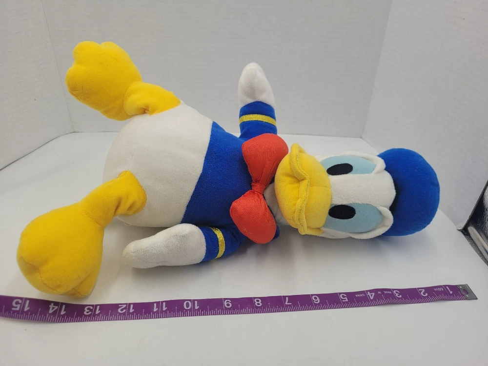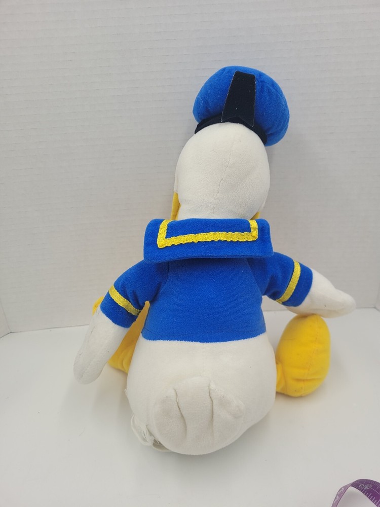 This Disney Donald Duck plush doll is a must-have for any collector or fan of the beloved character. With its soft and cuddly texture, this 15" stuffed animal is perfect for kids and adults alike. The doll features the classic Donald Duck design and is made of high-quality materials to ensure its longevity. Whether you're looking to add to your Disneyana collection or simply searching for a fun and adorable toy, this Donald Duck plush is sure to please. Its UPC and MPN numbers make it easy to identify and track, and its contemporary style fits perfectly with modern collections. Get yours today and bring a bit of Disney magic into your home! L