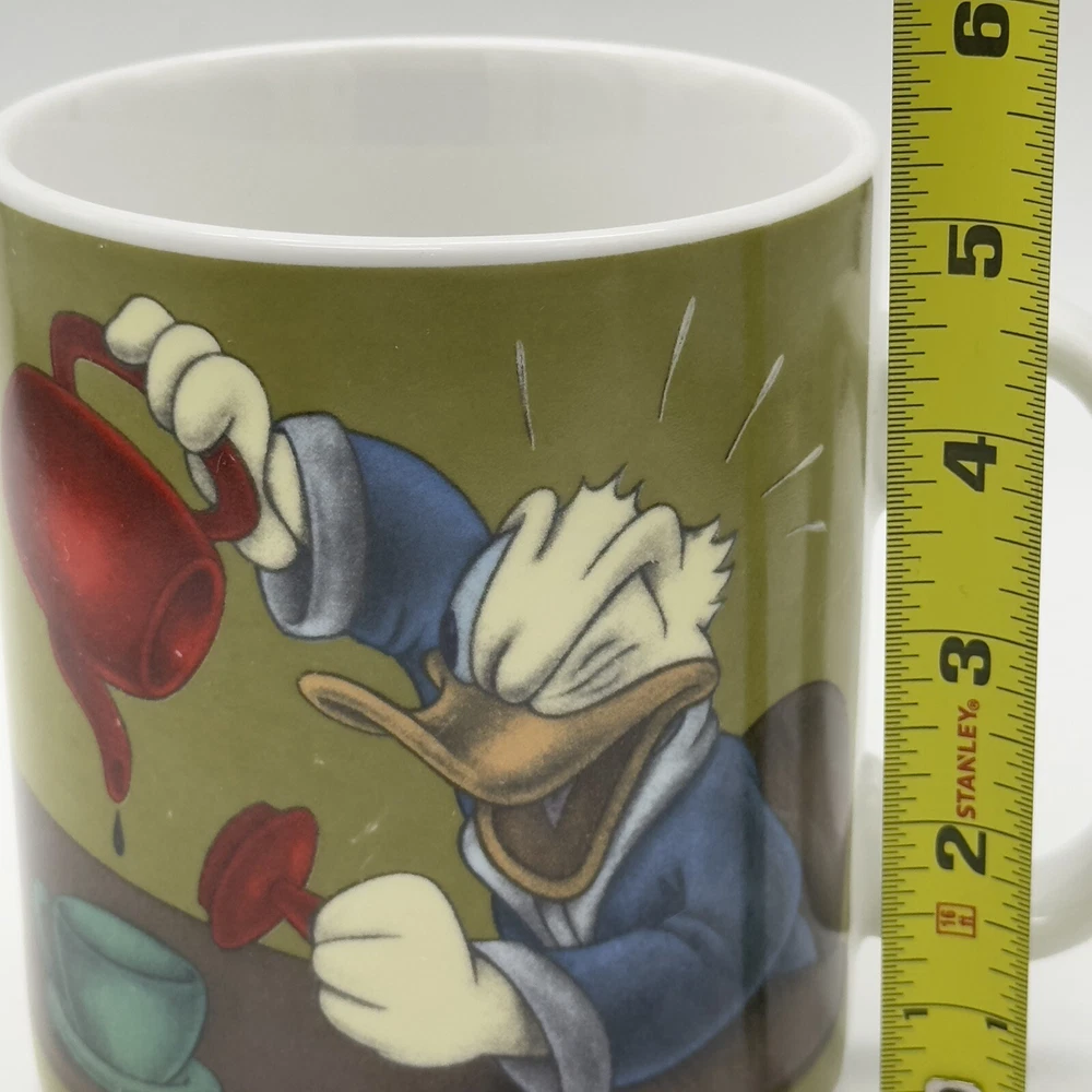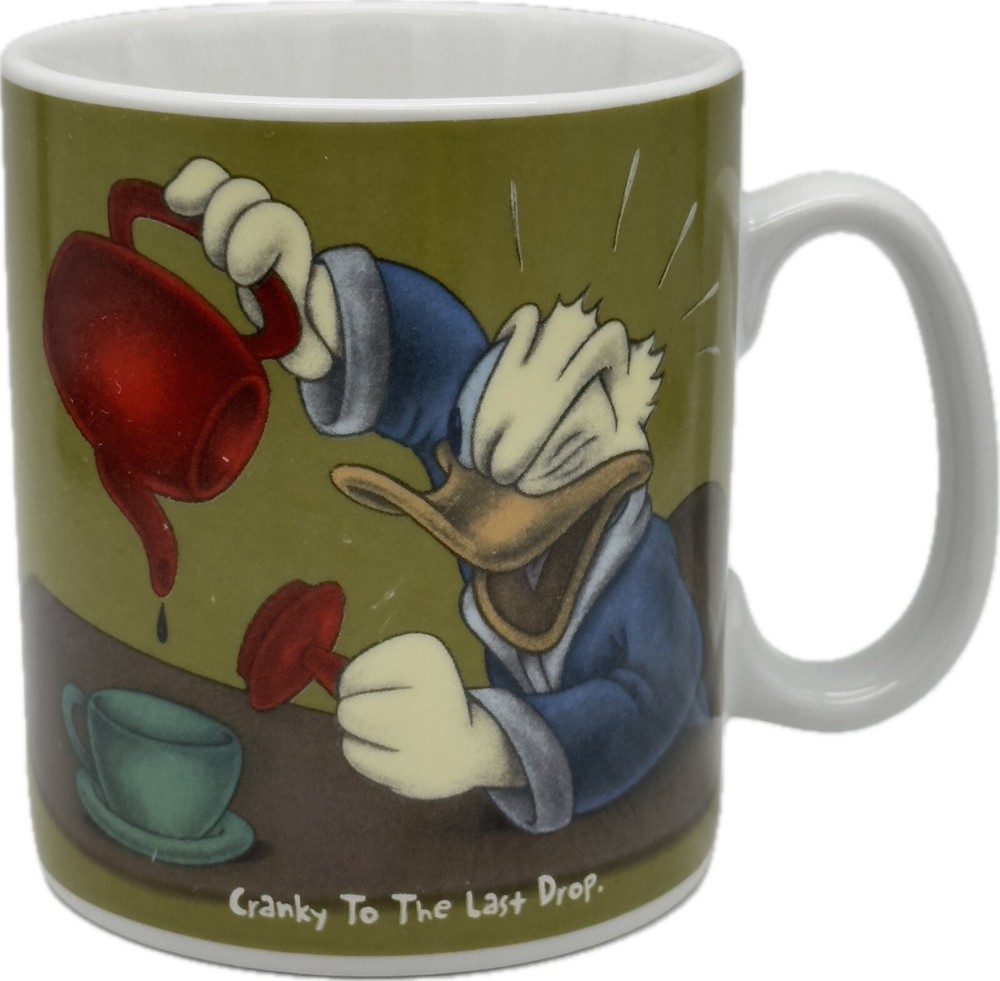 Disney Donald Duck Jumbo MUG Coffee Cup Soup Art Print “Cranky To The Last Drop” Good condition with a few minor scratches