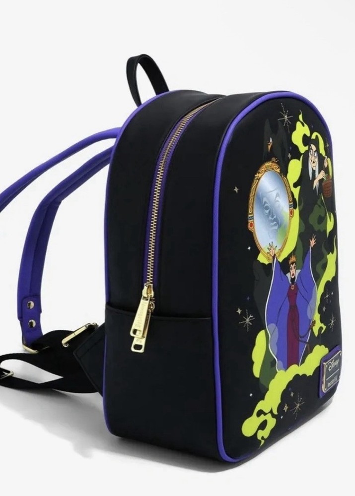 NWT Disney Evil Queen Loungefly mini backpack. This amazing bag features the Evil Queen in both her forms as well as her magic mirror. A must for any villains fan!