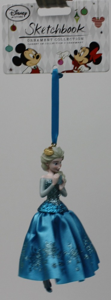 DESCRIPTION: Disney Store Frozen Elsa 2014 Sketchbook 5 1/2" high Fully sculptured figural ornament Satin gown with glittering filigree Glitter accents Satin ribbon for hanging Christmas Holiday Tree Ornament New in box RETURNS: Your satisfaction is important. Please contact us via eBay regarding any problems before leaving negative feedback. Any defects, damages, or material differences with your item, must be reported to us within 7 days of receipt of the item or 30 days from date of shipment Returned merchandise must be postmarked within 30 days of the shipment notification Return shipping will be paid by the buyer We will contact you within 14 days after receiving the item Refund will be given as money back or exchange if available
