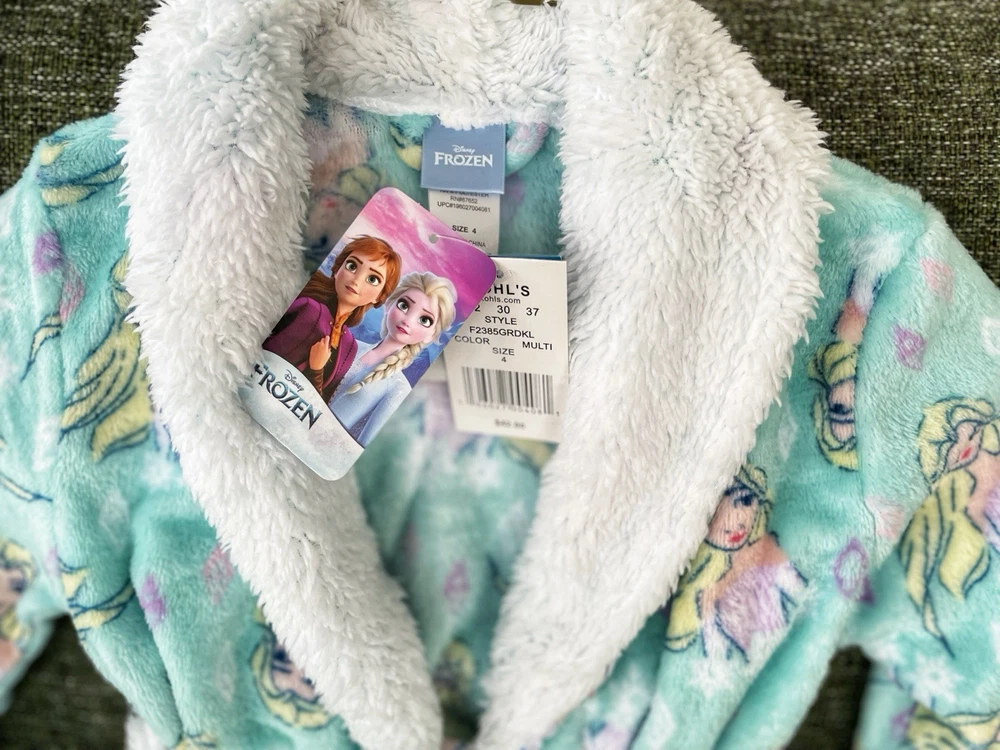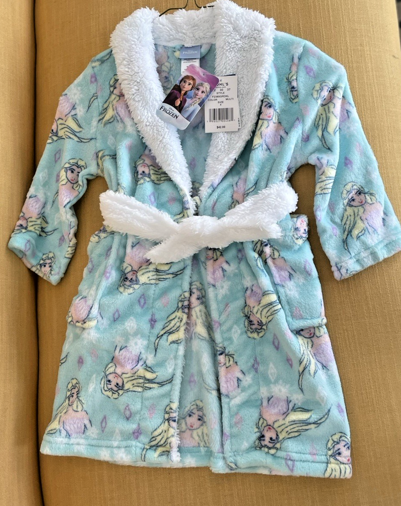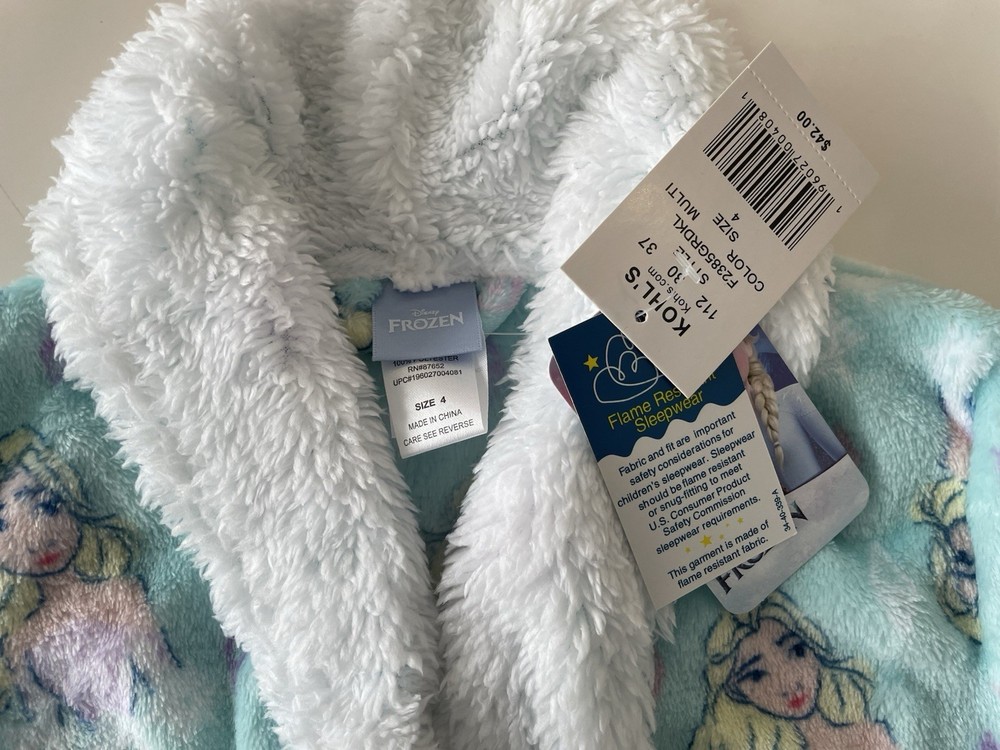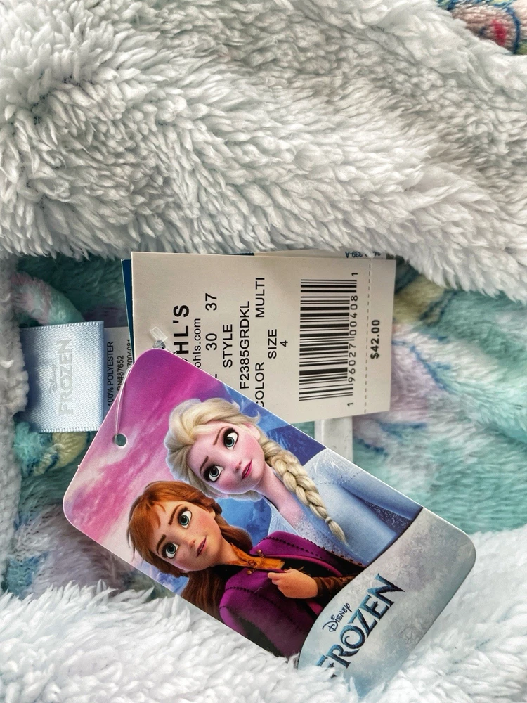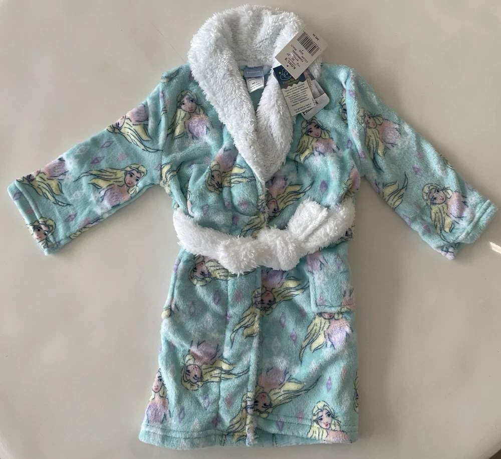 The Disney Frozen Super Plush Girls Robe in size 4 is a cozy and stylish bathrobe featuring Elsa from the popular Frozen franchise. Made from soft polyester fleece fabric, this multicolor robe has long sleeves and a tie closure for a comfortable fit. Perfect for the winter, fall, or spring seasons, this kimono-style robe also includes charming princess-themed details like pockets and a belt. Machine washable for easy care, this robe is a must-have for any young Frozen fan looking to stay warm and stylish.