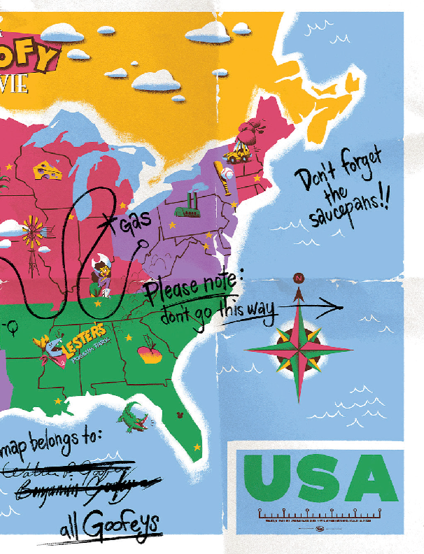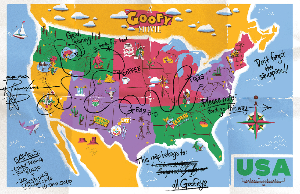 Disney Goofy Movie Map Poster 13x19 Satin Finish Custom Sizes