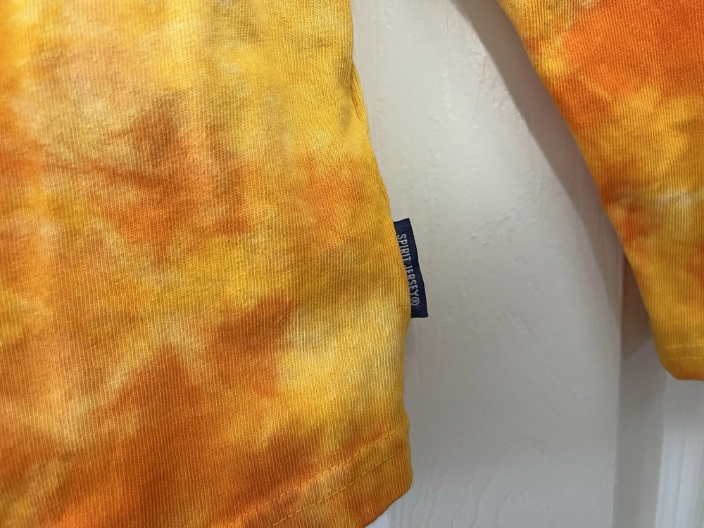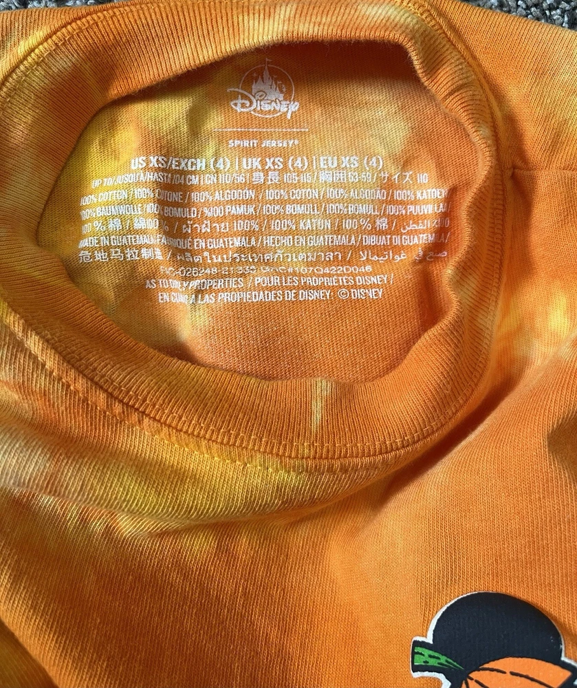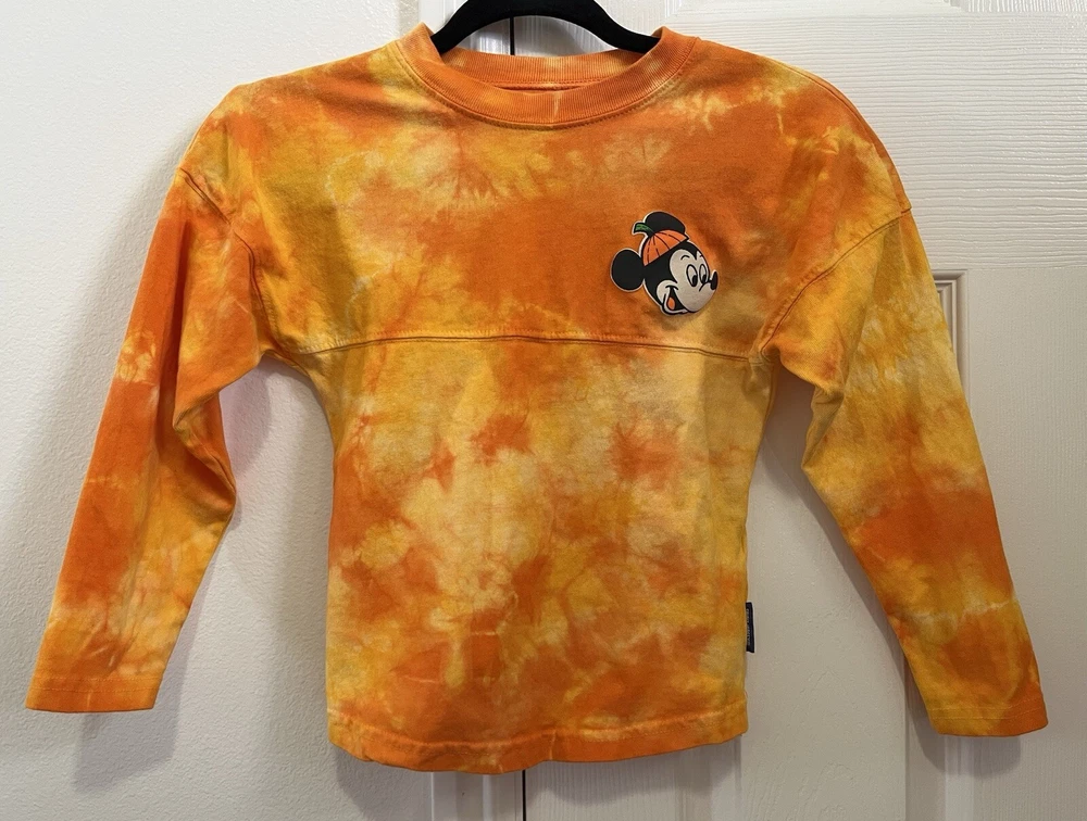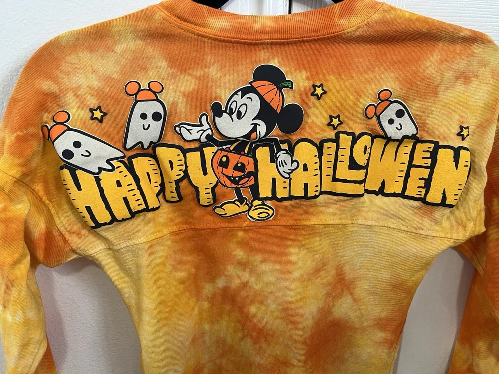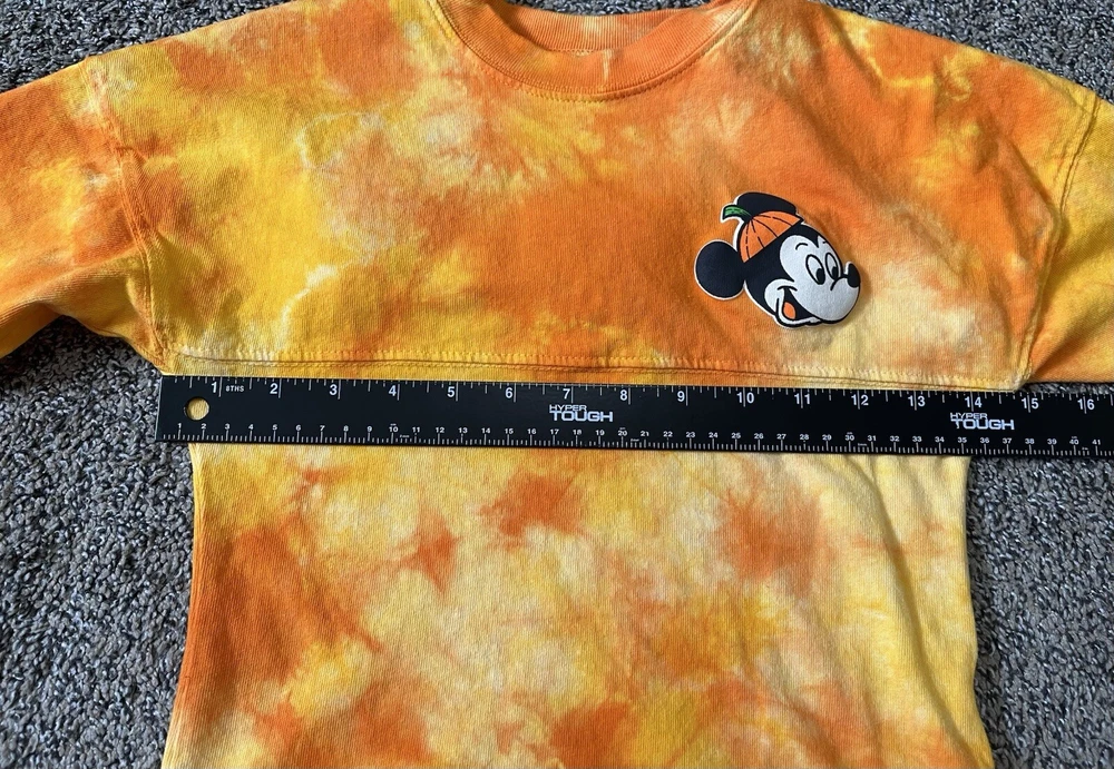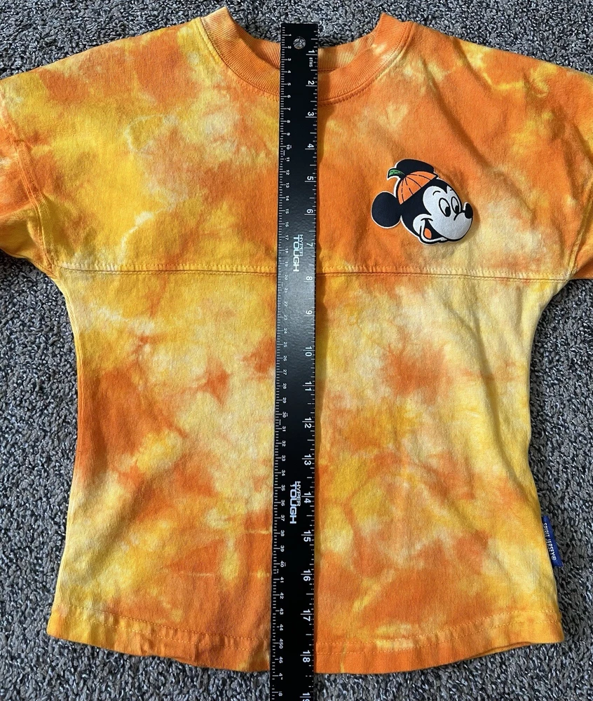 The Disney Happy Halloween Mickey Mouse Orange Spirit Jersey is a relaxed fit, long-sleeved top featuring a classic Mickey Mouse character design. Made from 100% cotton fabric, this pullover shirt has a crew neckline and is easy to care for. It is designed for unisex kids in size XS, perfect for celebrating Halloween in a comfortable and casual style. The vibrant orange color and Halloween theme add a fun and festive touch to this Disney-branded top, making it a great addition to any young Disney fan's wardrobe. Excellent used condition! Measurements in pictures.