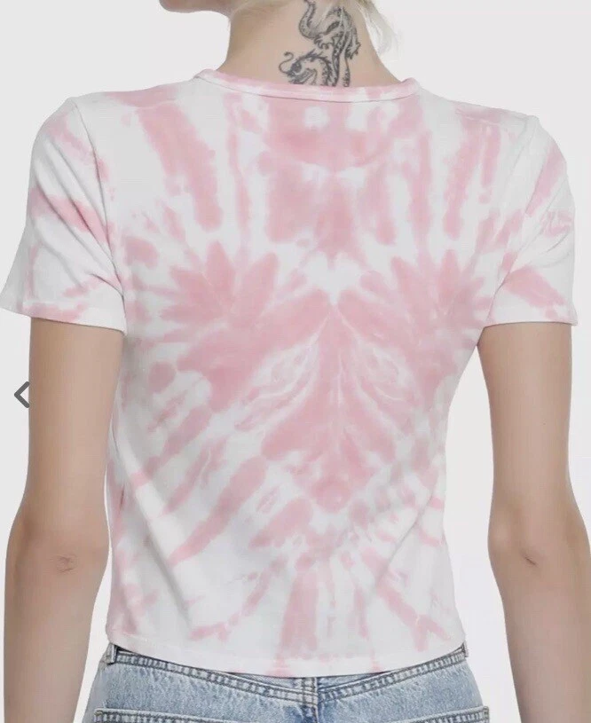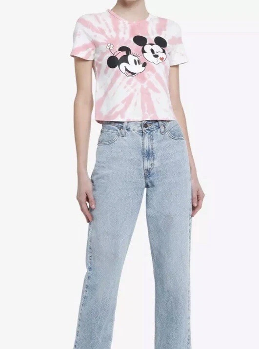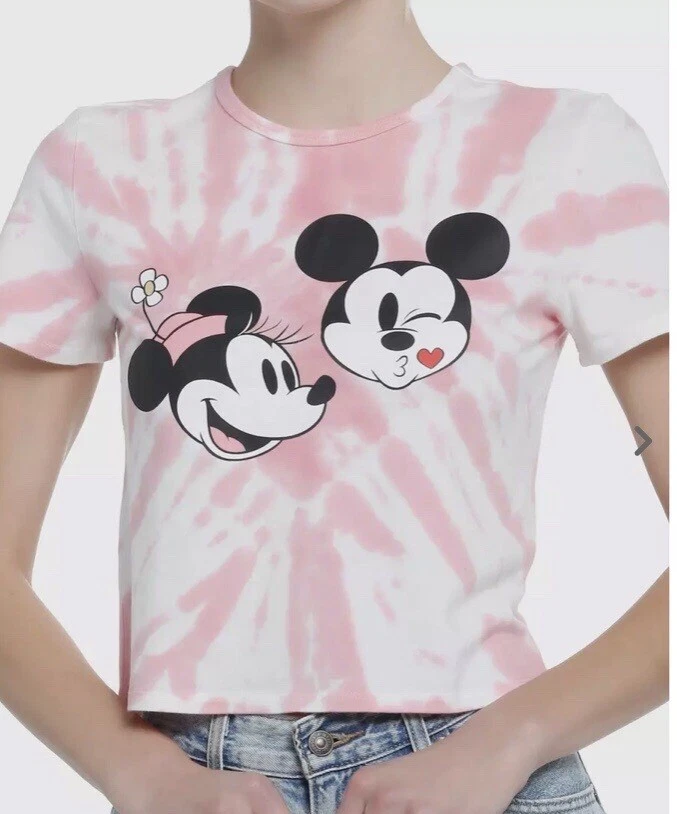 Disney Her Universe Mickey Minnie Kiss Tie Dye Crop Women T-Shirt Pink Medium. Condition is New. Shipped with USPS Ground Advantage.