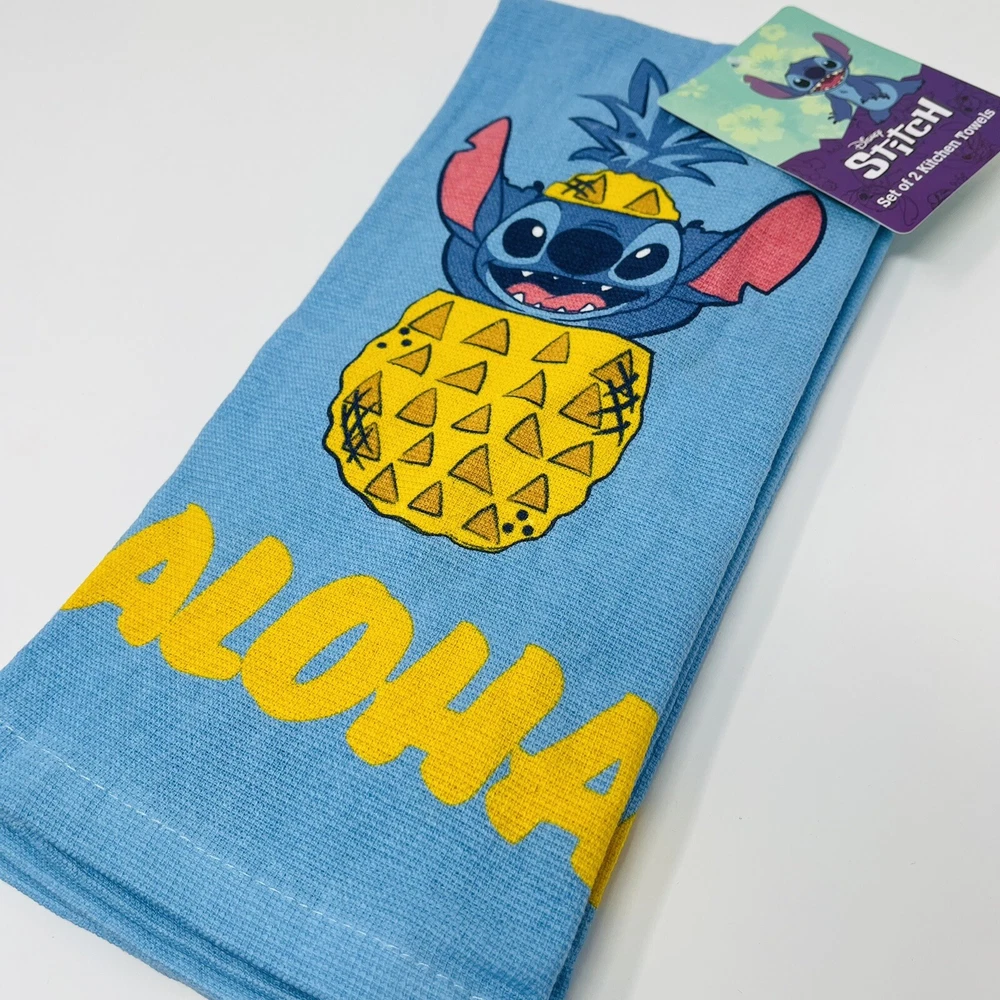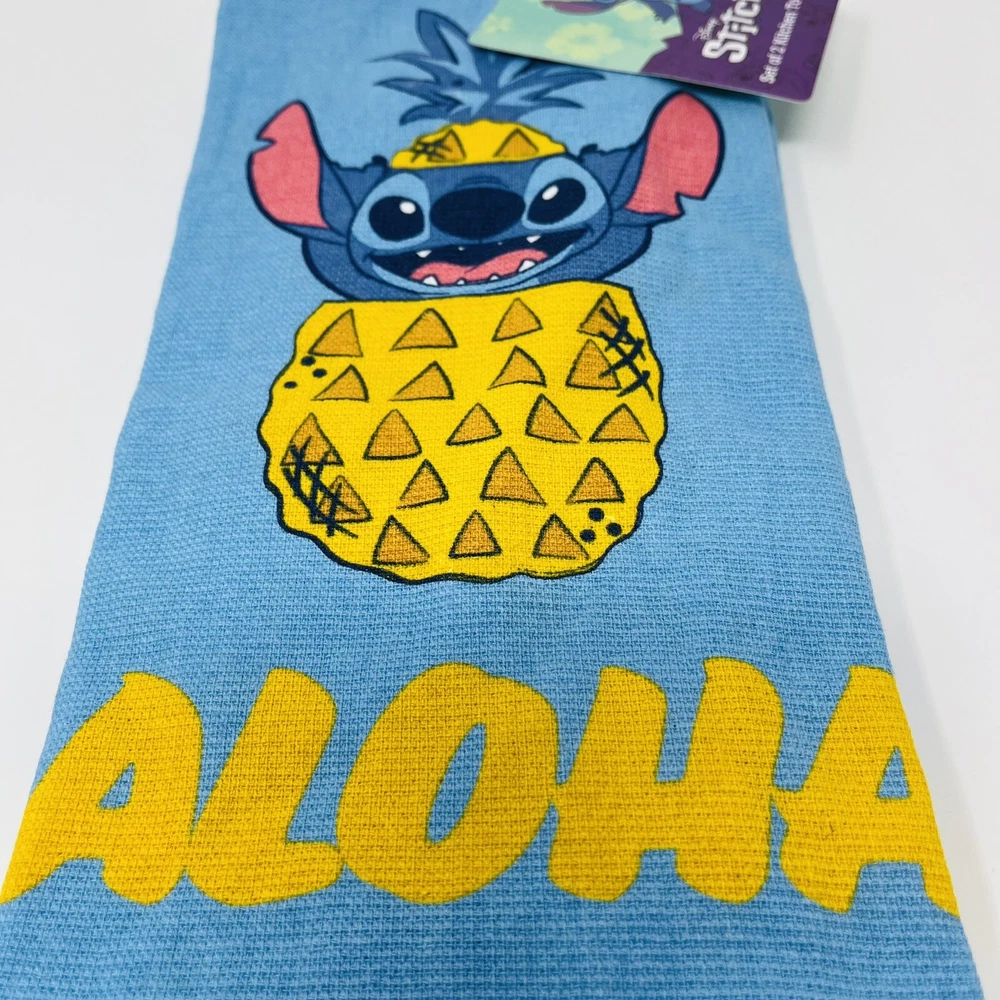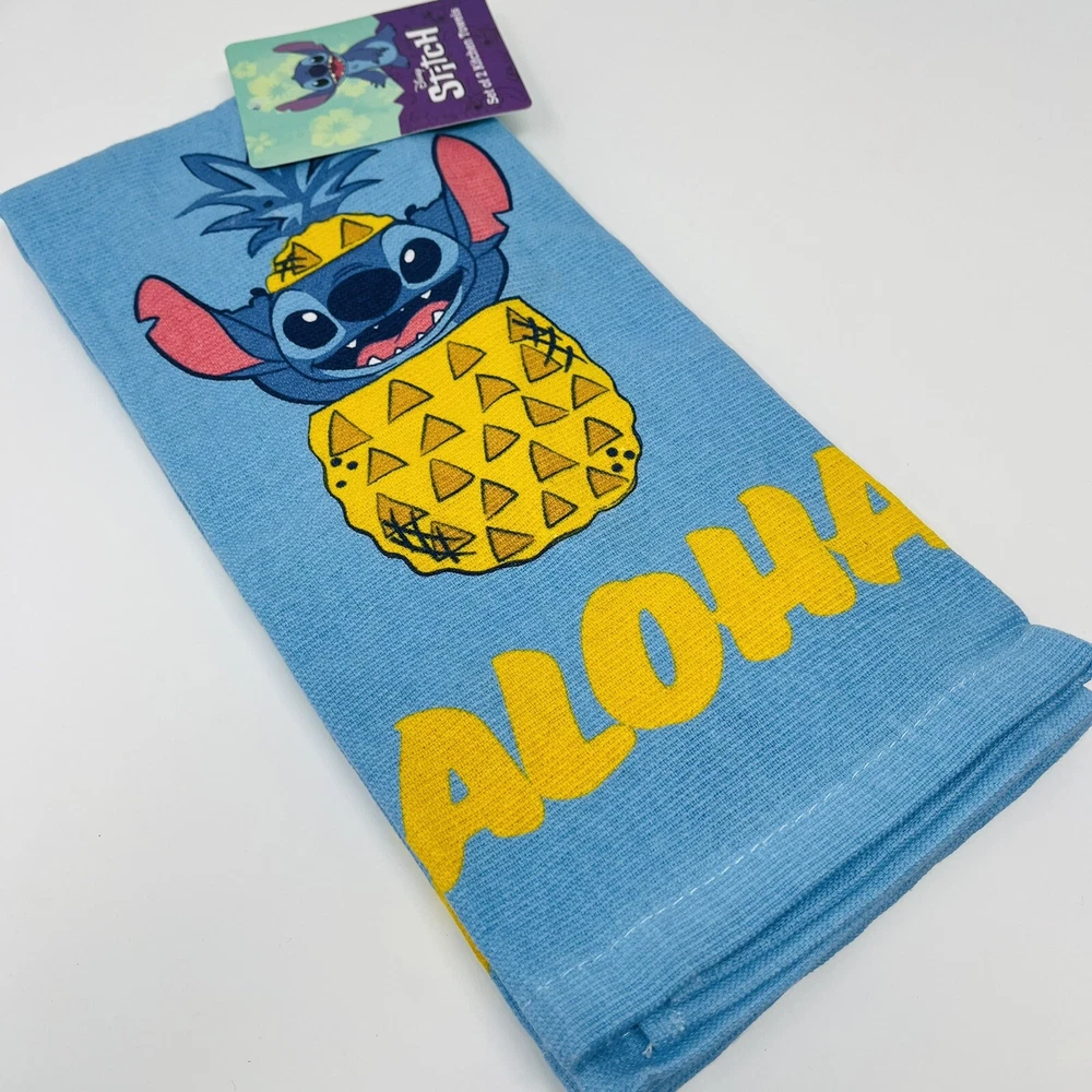 Disney Lilo & Stitch 2 Pack Hand Kitchen Bathroom Towels Aloha Pineapple NWT