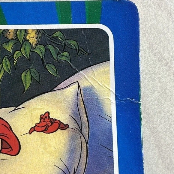 For your consideration is a new old stock Disney's The Little Mermaid "Ariel's Bedtime at the Palace" Accessory Set. Date 1991 This set is so adorable! Features pink nightgown with white color. White plastic slipper flat shoes with a pink ball. You also get a floral pillow and a sheet folded under the pillow. There's a little hand mirror, pink comb and a Sebastian pvc figure. This is by Tyco and marked on the bottom "The Walt Disney Company." The packaging is in nice condition. Crease near the top. Comes from a smoke free home. I use calculated shipping and don't add a handling fee, so buyers only pay the actual shipping costs I incur. This approach helps keep expenses low for the buyer.