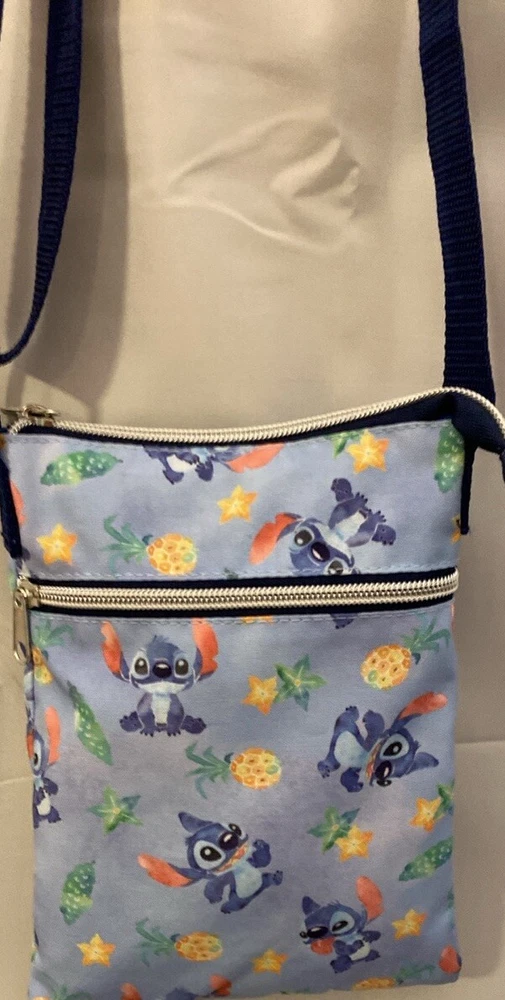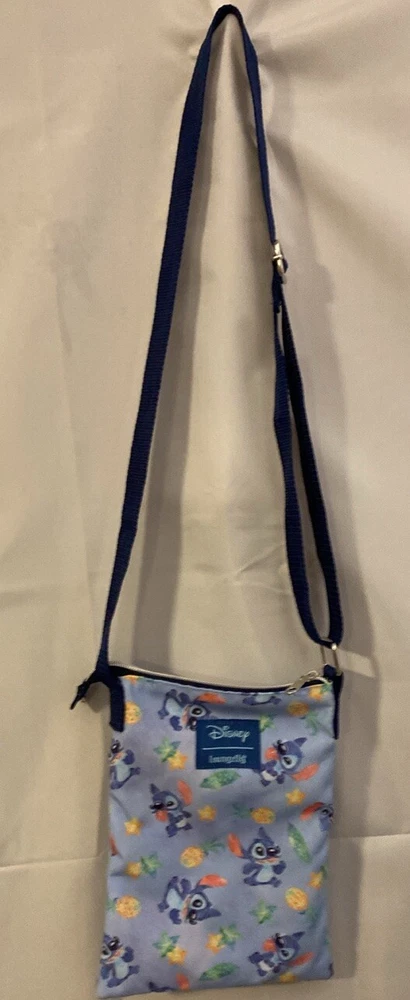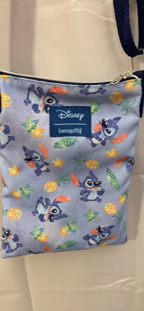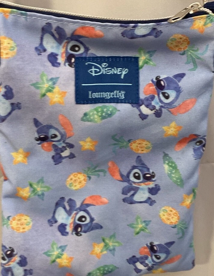 This Disney Loungefly crossbody bag is a must-have for any Lilo & Stitch fan. The bag features a watercolor design of Stitch, adding a cute and unique touch to your outfit. The bag is small in size, making it perfect for carrying your essentials while on the go. The bag is made by Loungefly, a well-known brand in the Disneyana collectibles category. The bag is also a part of the Contemporary (1968-Now) subcategory, making it a modern and trendy accessory. The bag is multicolored and features the Disney franchise, making it a perfect addition to any Disney lover's collection. In excellent condition! No rips or pen marks inside.