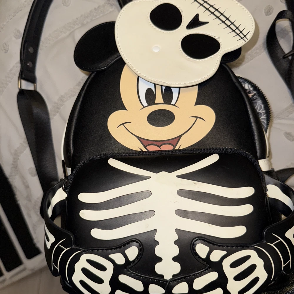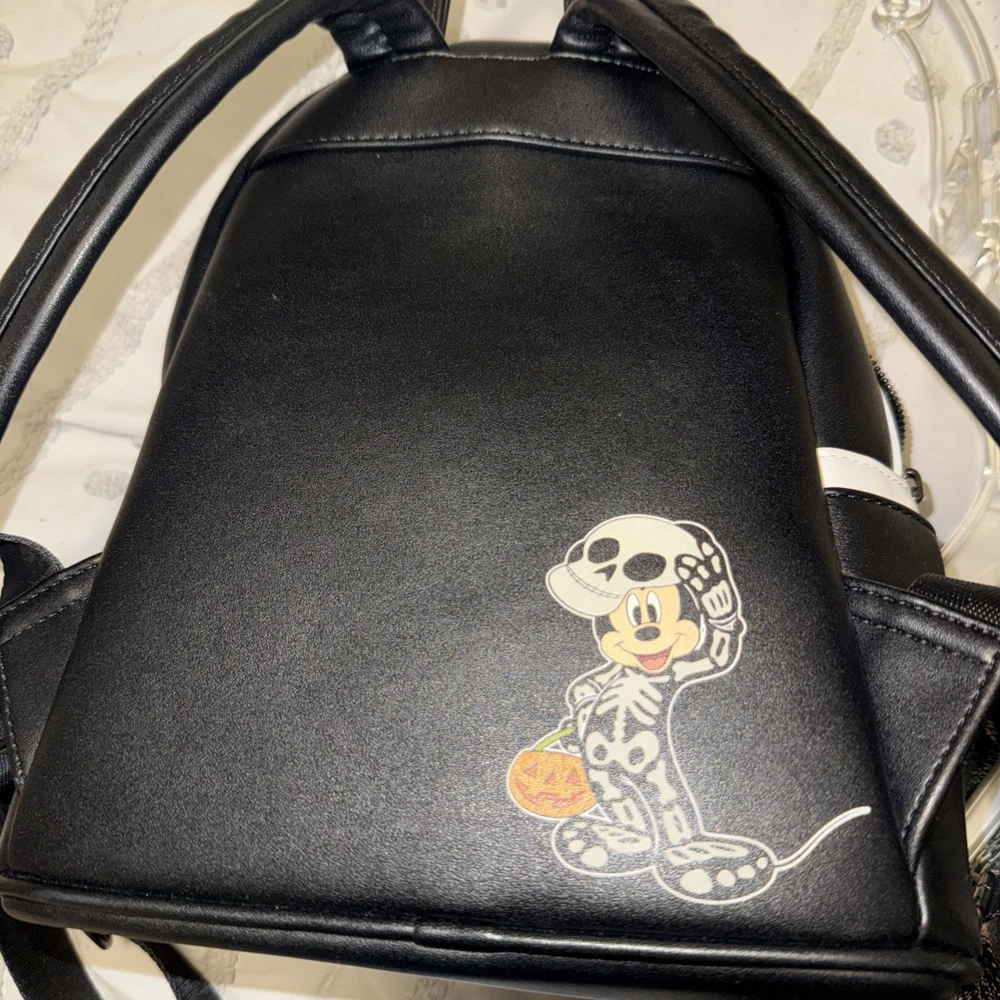 Franchise: Disney Brand: Loungefly Features: Glow in the Dark Character/Story/Theme: Mickey Mouse / Halloween Color: Black / White Year: 2022 Size: Mini