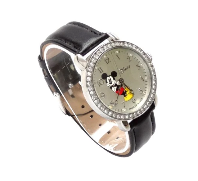 Product Description Quartz movement Quartz movement Case diameter: 35 mm Metal case; Silver dial; Date function Who knew Mickey could look so cool? This hip women's watch from Disney features a fresh, fun Mickey Mouse graphic that stands out against a silver-tone dial that's studded with Swarovski crystals at each Arabic numeral hour marker to complement the crystal-embedded bezel. A chic black leather band joins to this watch's round, metal case and brings out the beauty of its silver-tone hands. Returns are accepted. Buyer must contact us within three days of receiving the items. Buyer must be return or exchange within 30 business days of the purchase. However, the product must be returned in its initial condition. Item return must be with tracking delivery confirmation number. If you have any further questions or concerns, feel free to contact us we will reply back as soon as possible.