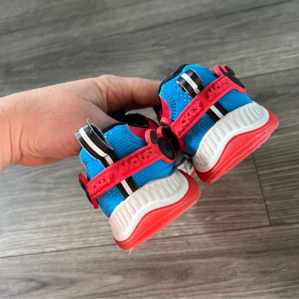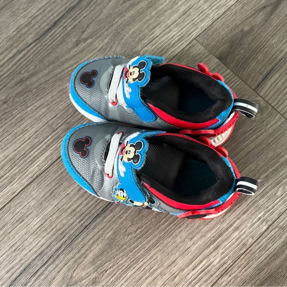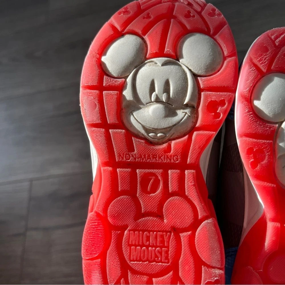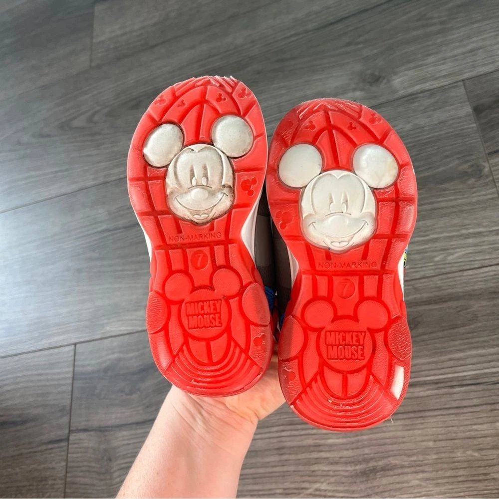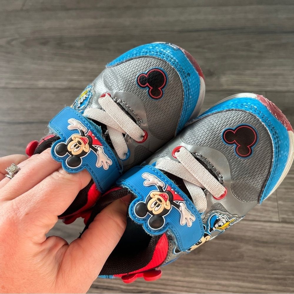 Disney Mickey Mouse Donald Duck Kids Shoes Red Blue Black Size 7 Light Up These Disney Mickey Mouse kids shoes feature a fun and colorful design with red, blue, and black accents. Perfect for little fans of Mickey, these shoes offer comfort and style for everyday adventures. See pics for general wear. In good preowned condition
