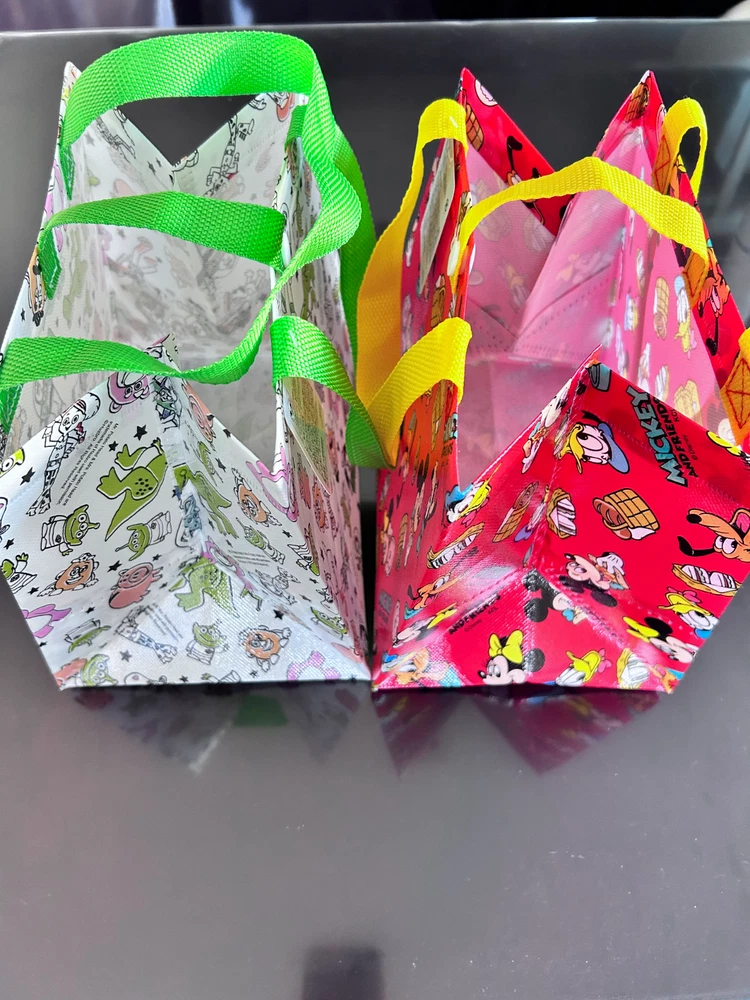 Bags for "Mickey and Friends" and "TOY STORY" New. Size 21cm x 24.5cm x 17cm The gusset is 17cm wide, so it can hold a lunch box, etc. This is a set of two very cute bags.
