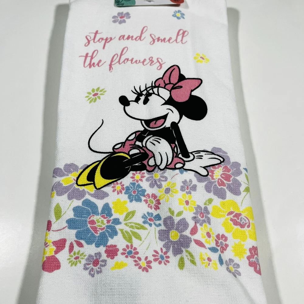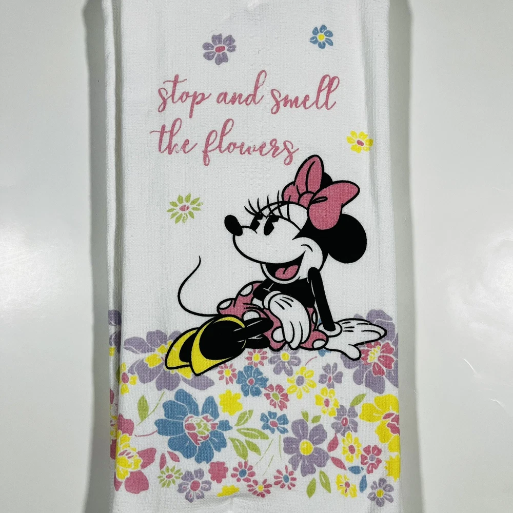 Disney Mickey Minnie Mouse 2 Pack Hand Kitchen Towels Stop & Smell The Flowers