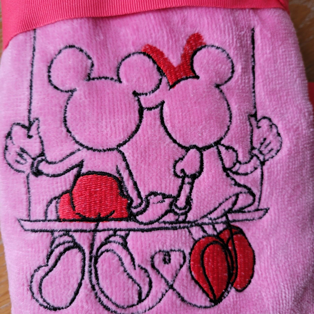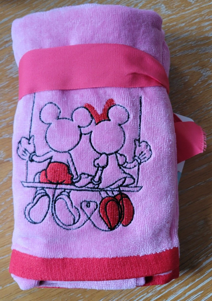 Disney Mickey & Minnie Mouse Valentine Set Of 2 Hand Towels Pink Embroidered